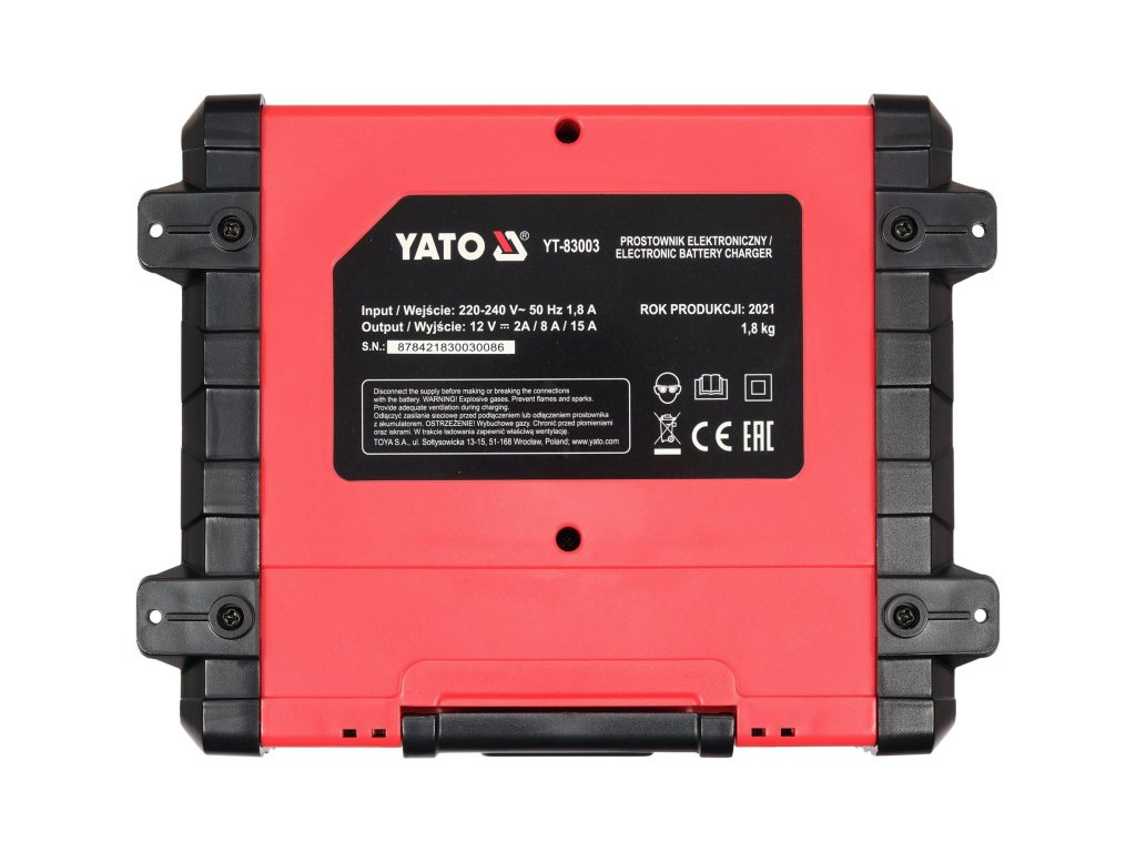YATO Nabíjačka batérií 12 V 2/8/15 A max LCD displej s kapacitou 200 Ah