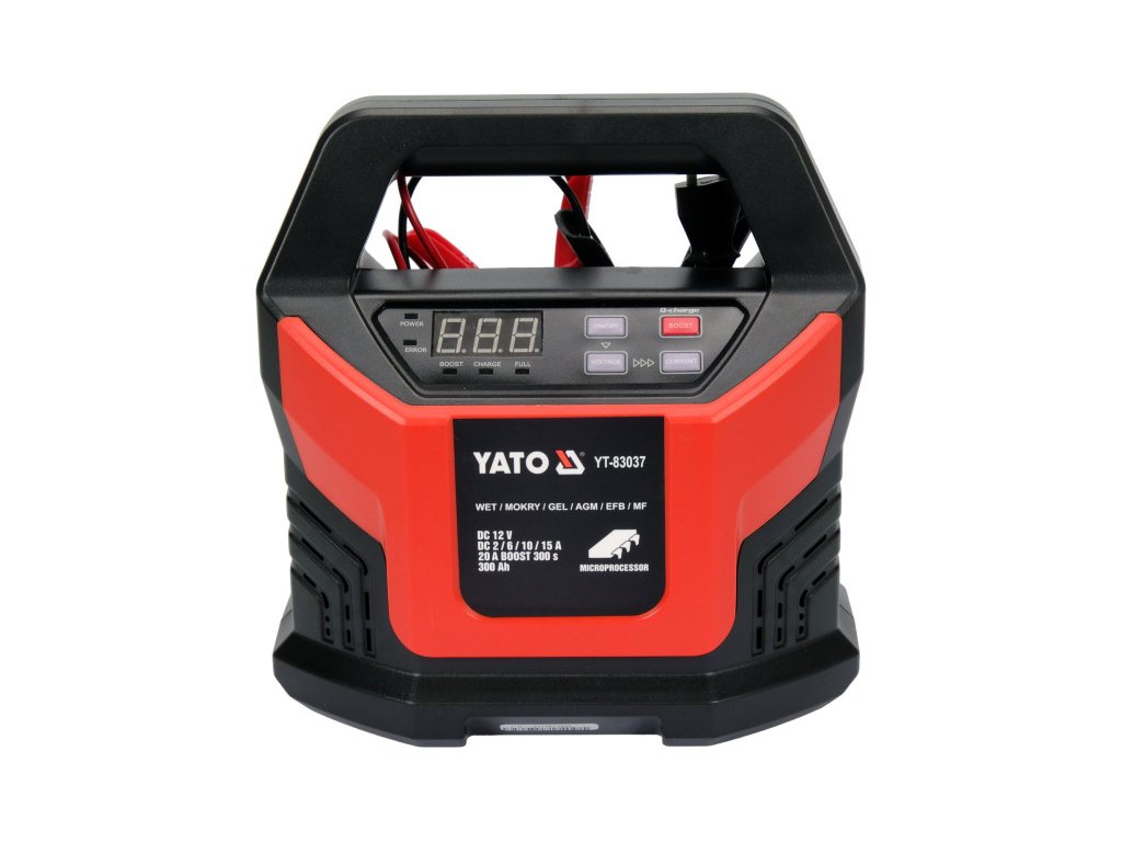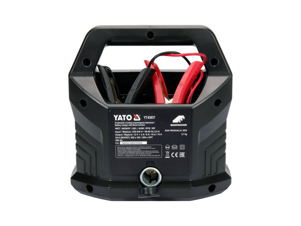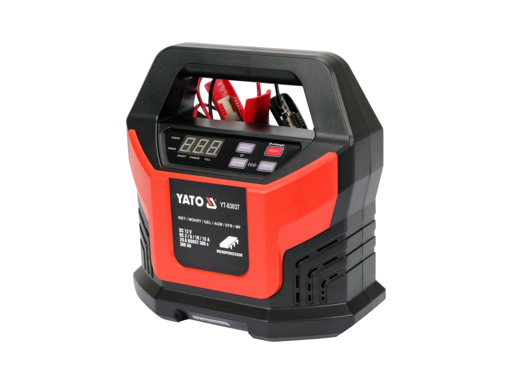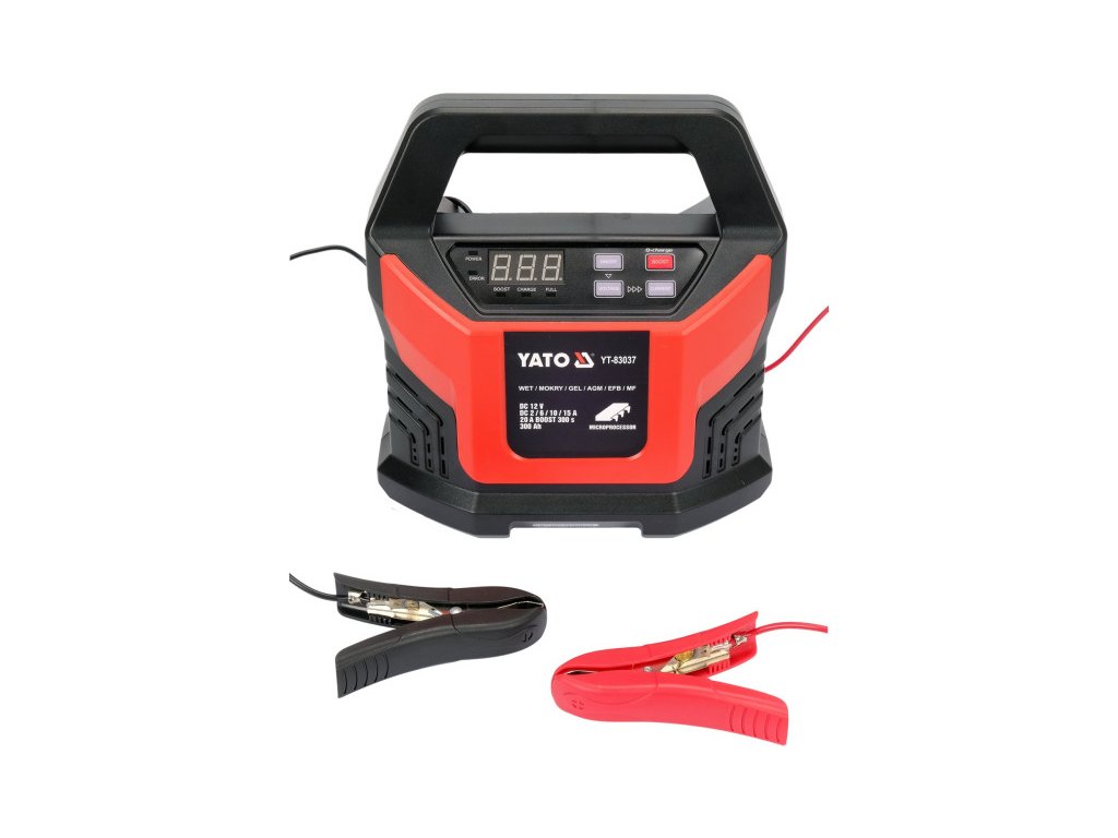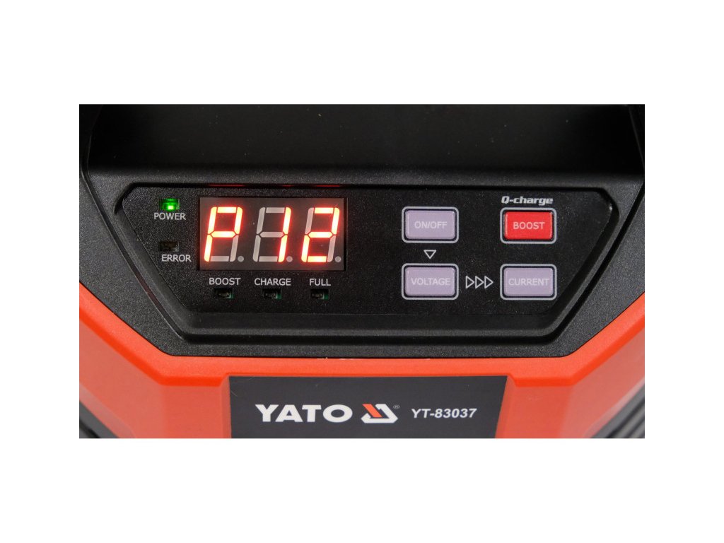 Az YT-83037 elektronikus egyenirányító egy profi eszköz 12 V-os akkumulátorok töltésére motorkerékpároknál, autóknál és furgonoknál, traktoroknál, motorcsónakoknál. Lehetővé teszik a ún. nedves akkumulátorok, gél akkumulátorok, AGM, EFB és MF akkumulátorok töltését.