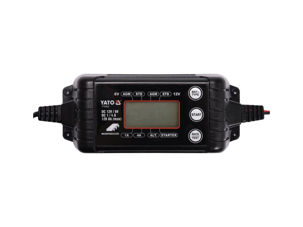 YATO Nabíjačka batérií 6/12 V 1/4 A max LCD displej s kapacitou 120 Ah