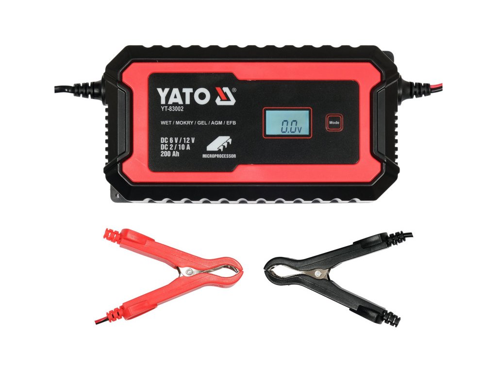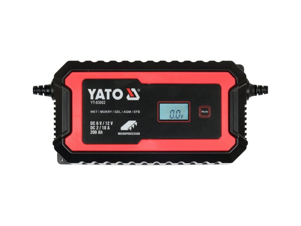 YATO Nabíjačka batérií 6/12 V 2/10 A max LCD displej s kapacitou 200 Ah