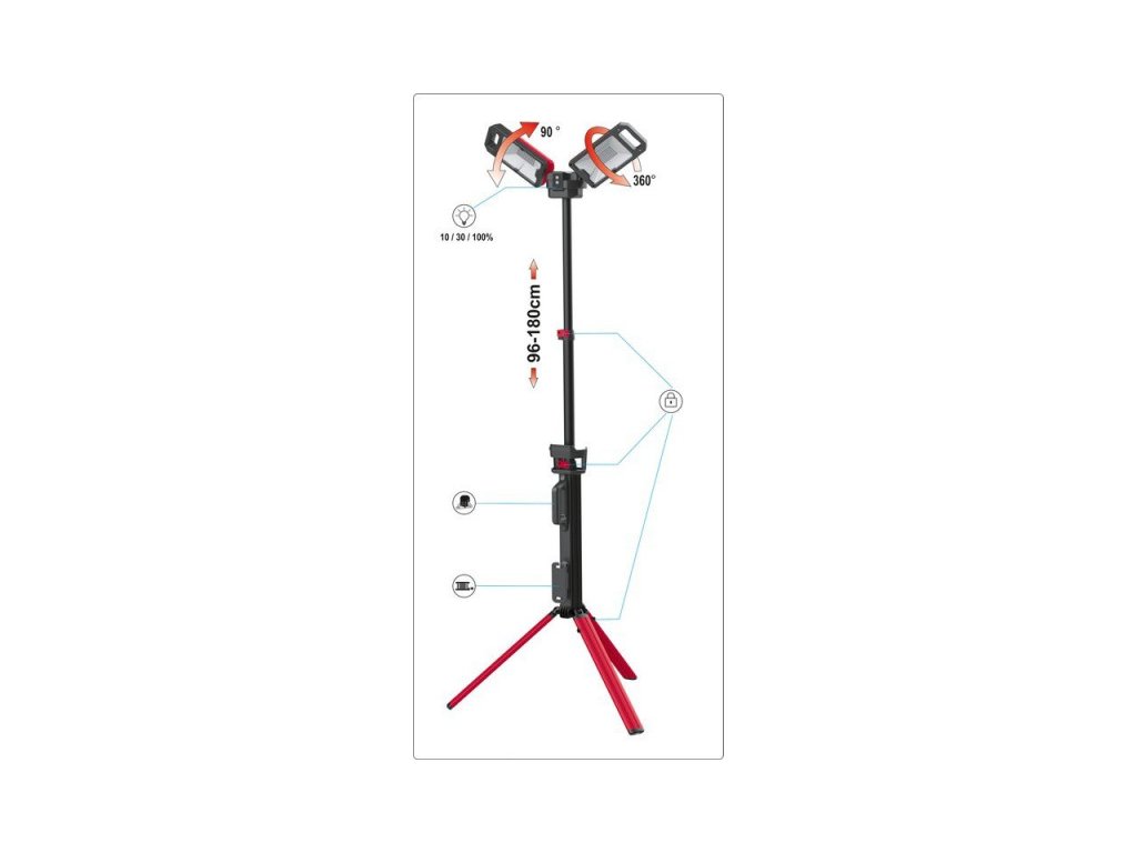 Nabíjateľný dvojitý LED reflektor so statívom 5000 lumenov YATO