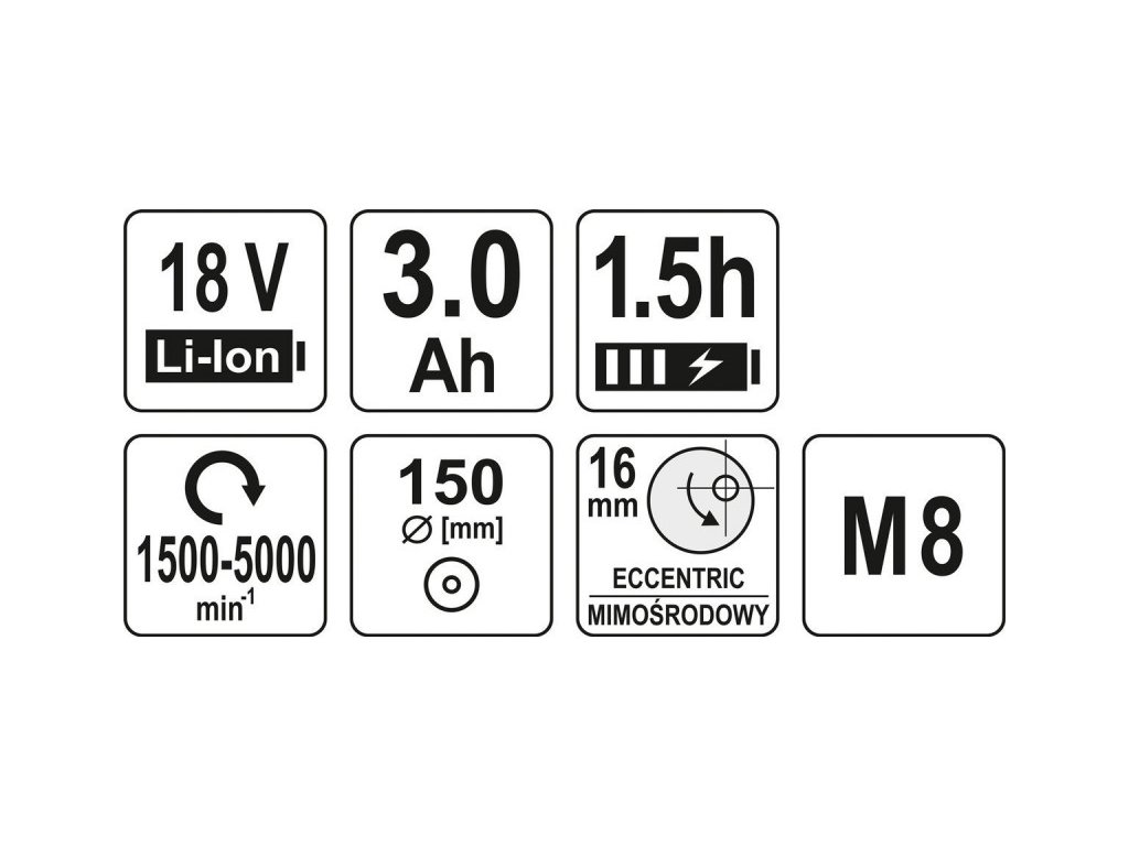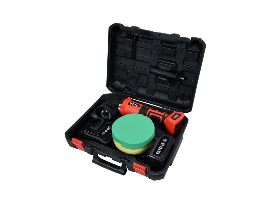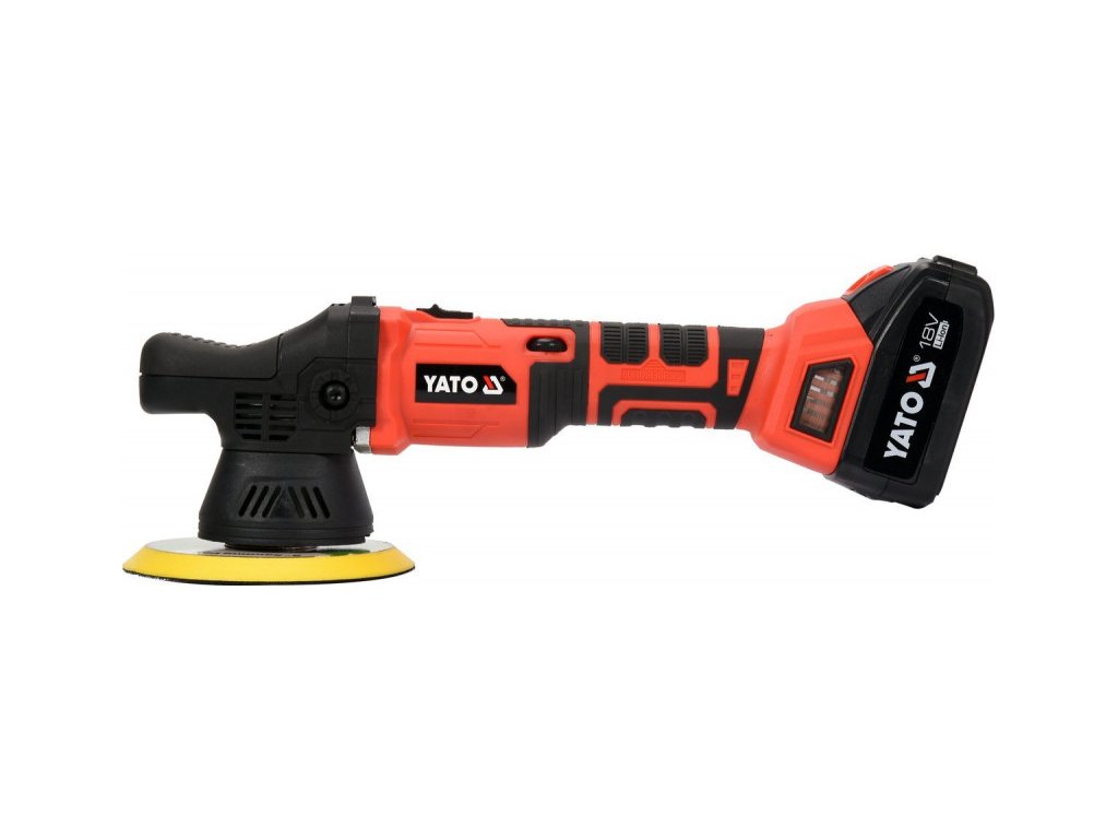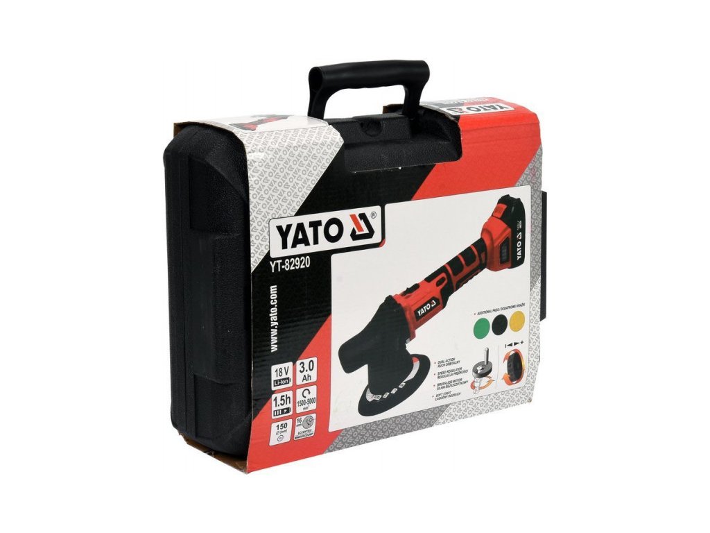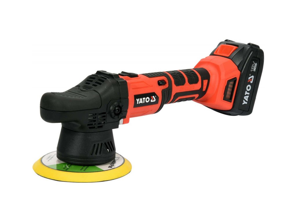Modern excentrikus polírozó, ami a fej orbitális mozgásának köszönhetően megszünteti a hologramok kialakulását az autó karosszériáján. A polírozópaszta vagy viasz használata kevesebb időt vesz igénybe, mint a klasszikus polírozók esetében, és a munka eredményei is jobbak. A gép egy olyan akkumulátorral működik, amely az egész Yato 18V rendszerhez közös, és illik például az YT-82805 ütvecsavarozóhoz, az YT-82827 sarokcsiszolóhoz vagy az YT-85680 univerzális porszívóhoz vagy az YT-82961 1600lm LED fényszóróhoz.