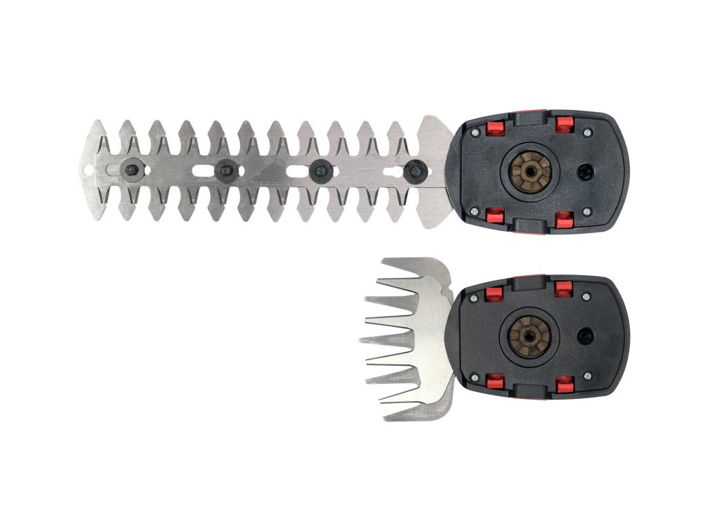 Könnyű, akkumulátoros fűnyíró olló. A kompakt forma precíz manőverezést tesz lehetővé fű és ágak vágásakor. Az ollók elől fűvágó pengével, oldalt pedig bokorvágó pengével vannak ellátva. A pengék kiváló minőségű szénacélból készültek, élezettek és nagy korrózióállóságúak. A pengék cseréje szerszám nélkül, intuitív módon történik. A pengéket csavarhúzóhoz illesztett köszörűkövekkel lehet élezni.