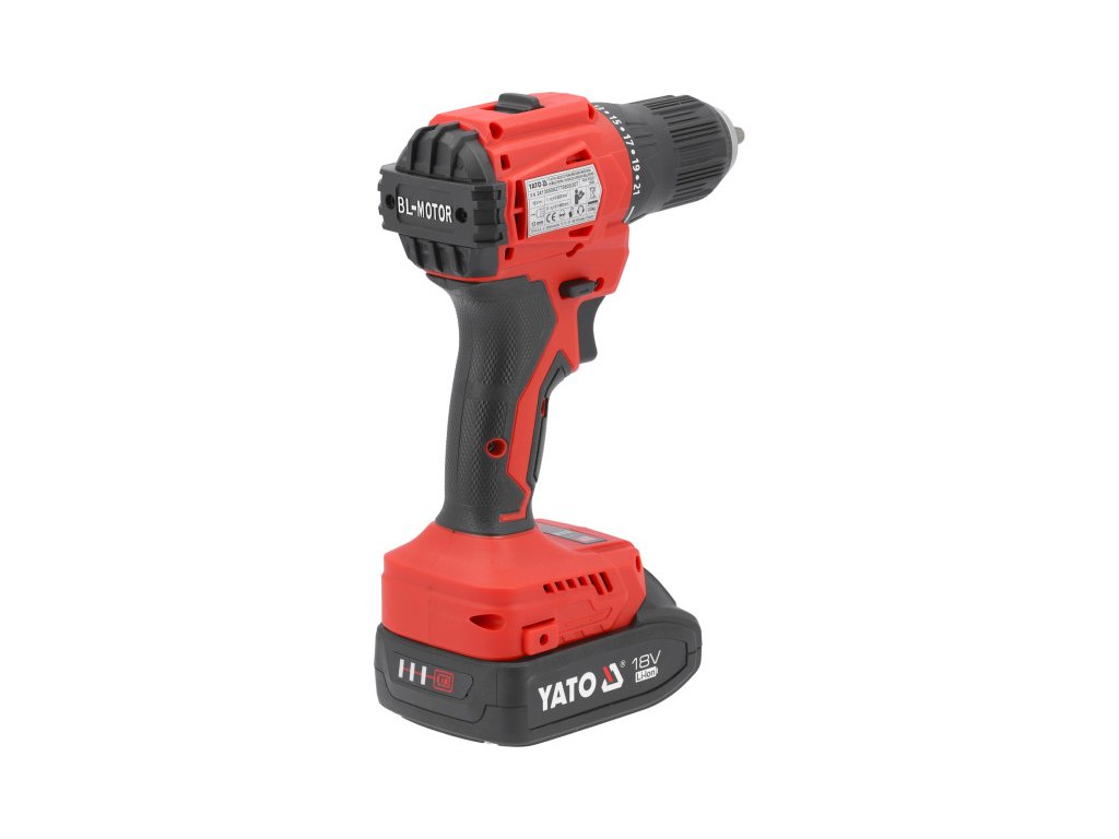 YATO Akumulátorový vŕtací skrutkovač 45 Nm 18 V bezuhlíkový (1 x 2,0 Ah batéria + nabíjačka)