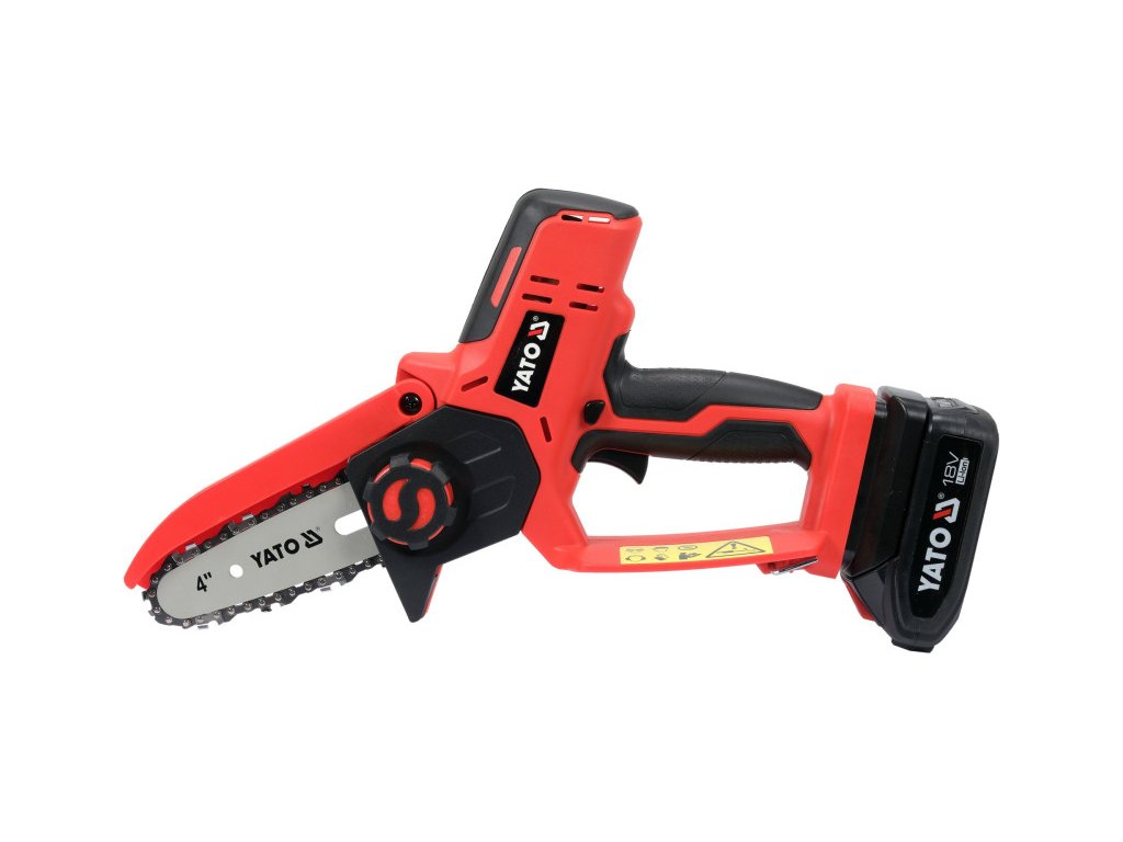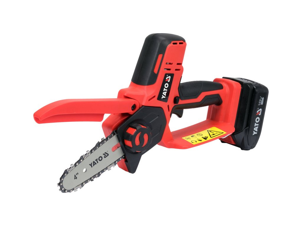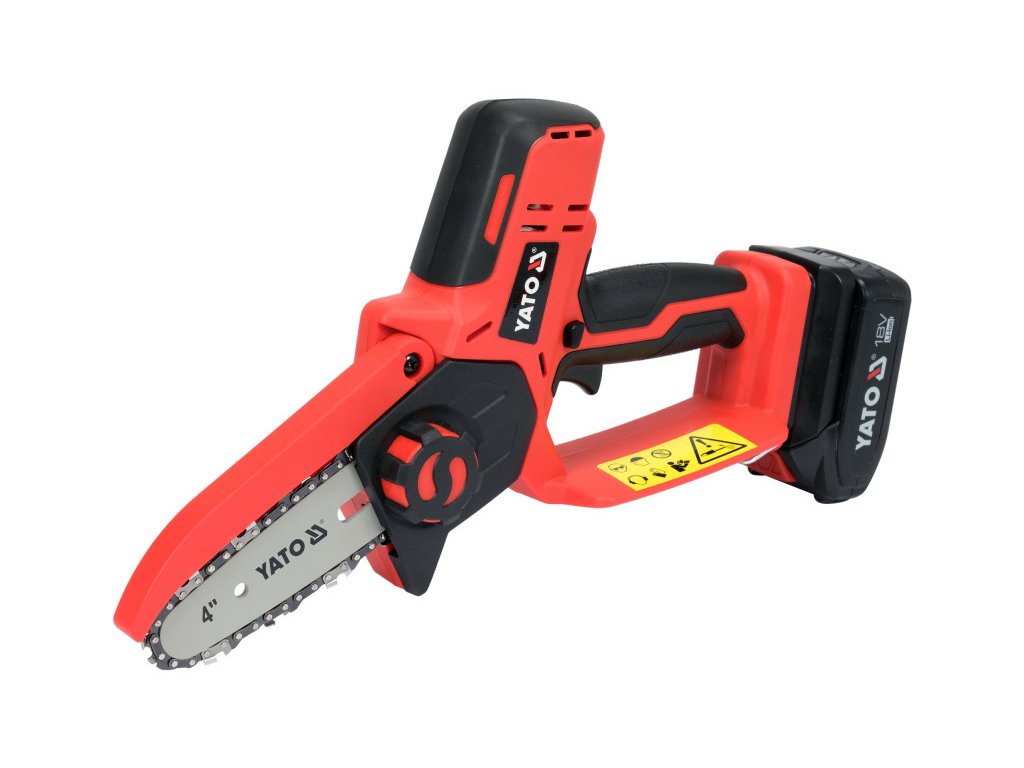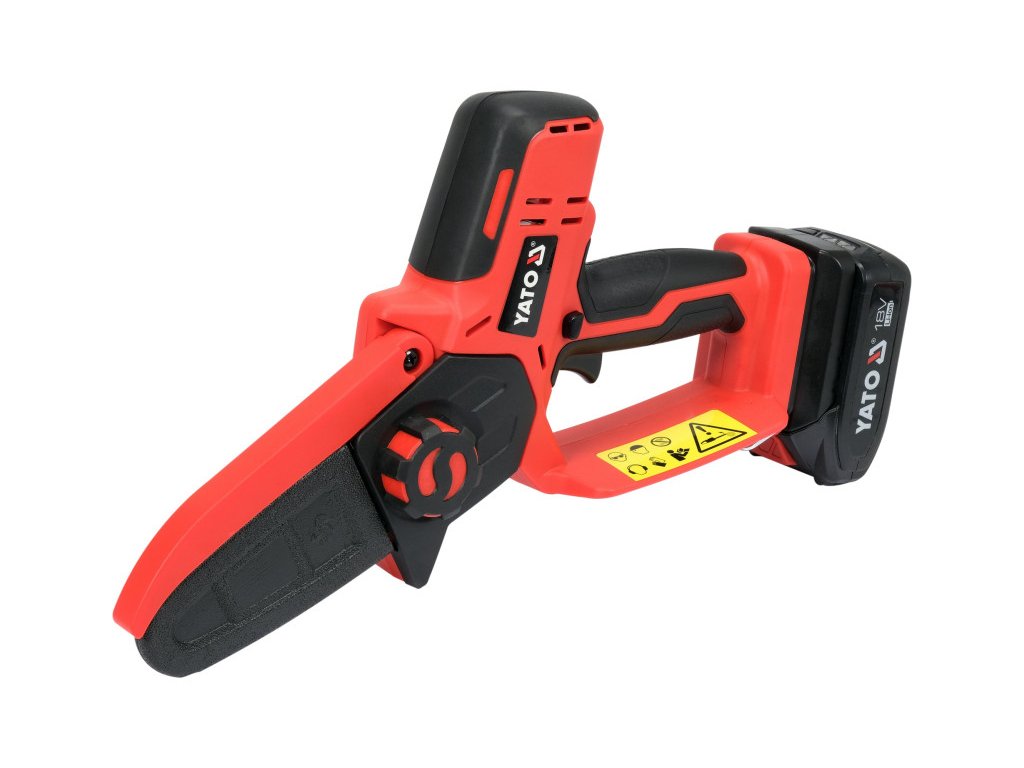Kis, kézreálló 18V-os akkumulátoros láncfűrész, amelyet kerti és tetőszerkezeti munkák során, faanyagok vágására terveztek. Ideális gyorsan levágandó faágak, bokrok, cserjék, kerti építészeti elemek átvágásához.
