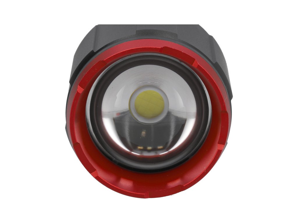 Tartós alumínium zseblámpa négy móddal, amelyek lehetővé teszik a fény aktivitásainkhoz és az akkumulátor szintjéhez való alkalmazását. A 25 W-os COB LED akár 2500 lm fényt is képes kibocsátani, akár 8 órán keresztül, és akár 180 m-ig érhet el. A fény sugár szélessége a fejen található zoom funkcióval állítható be.