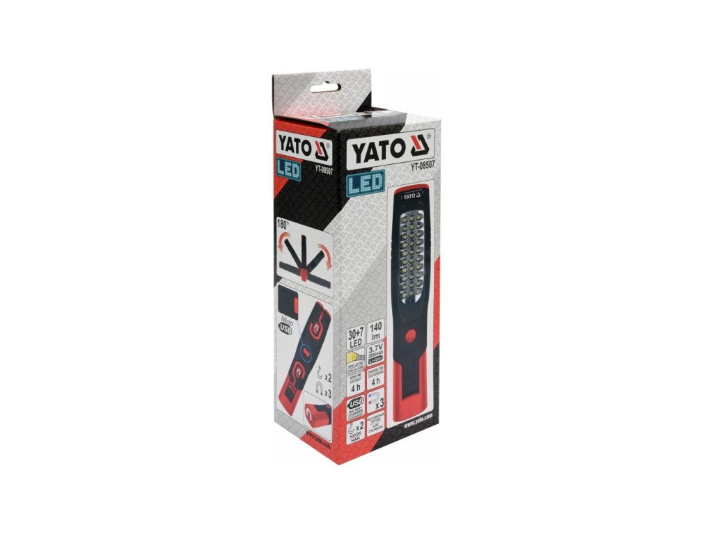 Az YT-08507 egy professzionális, újratölthető LED hordozható lámpa. A lámpa fő paneljén 30 LED található, amelyek erős fényáramot biztosítanak, 140 lm-et. Ezen kívül további 7 LED található a lámpa elején, amelyek zseblámpa funkciót látnak el, megvilágítva a nehezen elérhető helyeket. A lámpa megerősített testkonstrukcióval és ütésálló polikarbonát árnyékolóval rendelkezik.