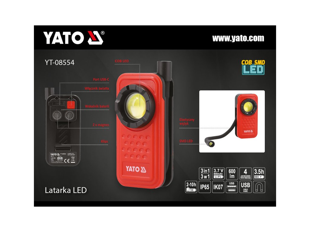 YATO Akkus LED Lámpa 600 lm