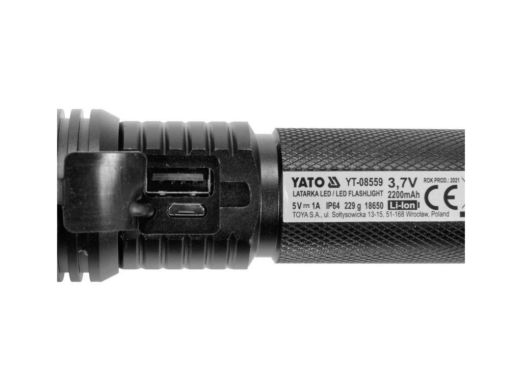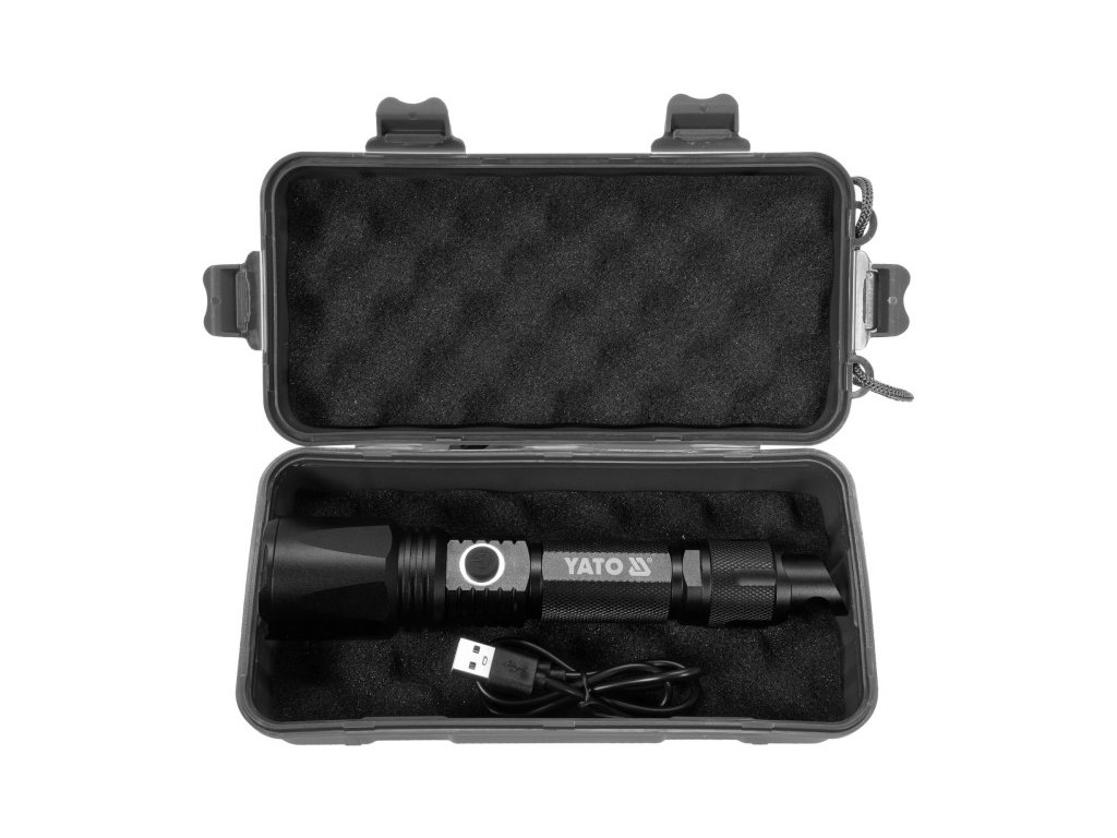 Egy masszív, alumínium Yato zseblámpa, amely a POWER LED-del van felszerelve, amely 900 lm fényt és 200 m hatótávolságot biztosít. Az öt működési mód lehetővé teszi a fény tevékenységekhez és az akkumulátor szintjéhez való igazítását. Egy lítium-ion 3,7V 2200 mAh akkumulátorral rendelkezik, ami akár 7 óra működést biztosít és más eszközök töltését is lehetővé teszi - powerbank funkció. Extra bónuszként a zseblámpa egyedi alja üvegnyitóként és üvegtörőként is funkcionálhat. Egy tartós tokban csatokkal ellátva, a készlet egyszerű tárolást és szállítást tesz lehetővé, és kiváló ajándék.