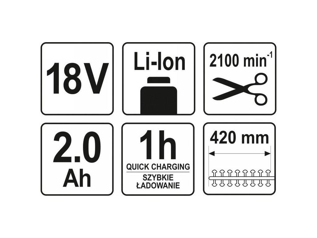 Akumulátorové nožnice na živé ploty 18V 1 – akum. 2.0Ah Li-Ion