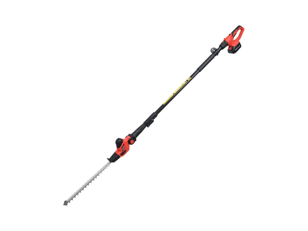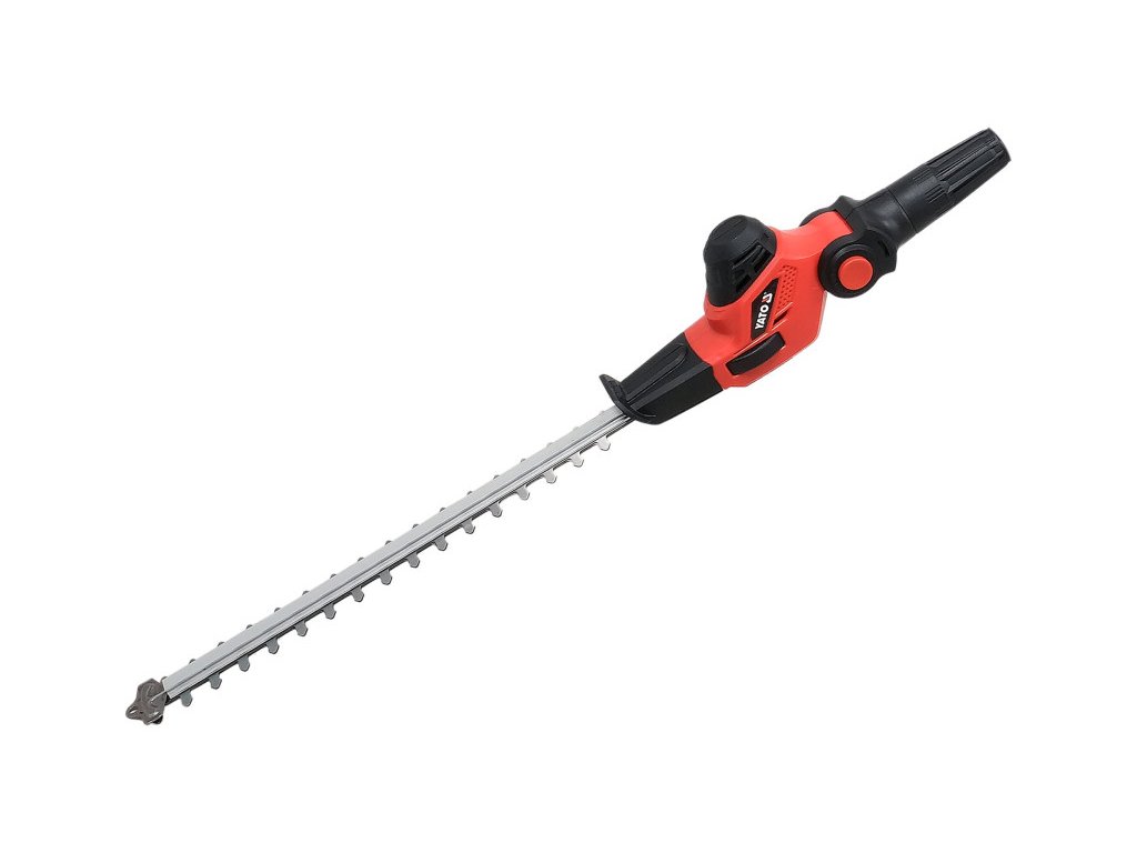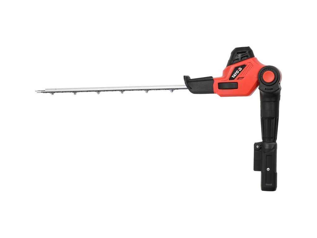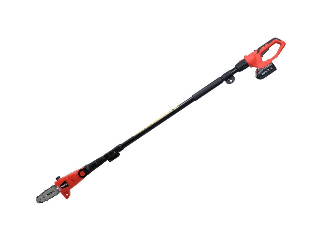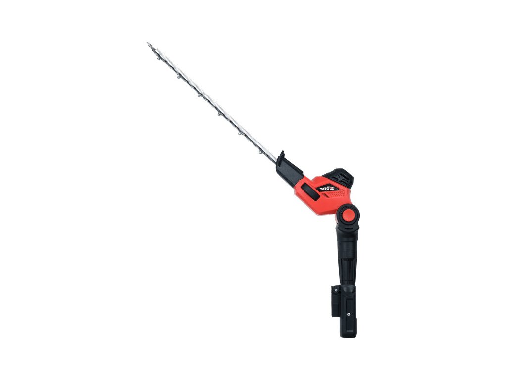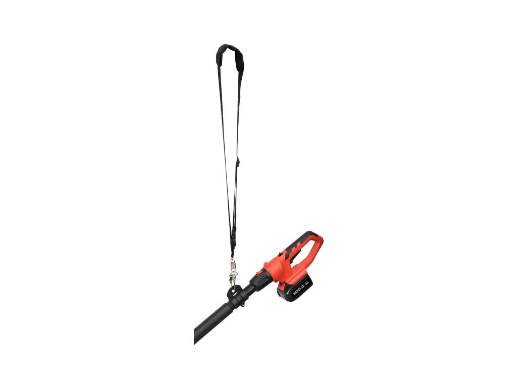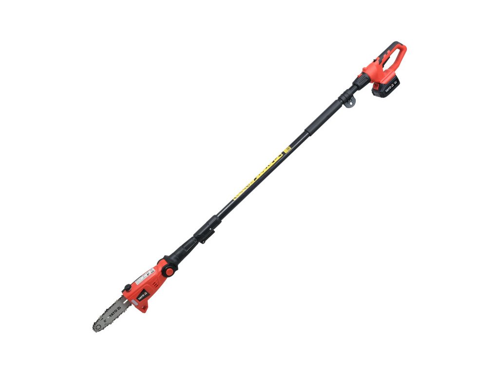 Ez az eszköz két funkciót ötvöz - a felszerelt fejektől függően, vagy gallyazó gépként működik ágak vágásához, vagy sövényvágóként. A teleszkópos nyéllel létrák nélkül is el lehet érni akár 5,5 m magasságot. Az ágak vágásának megkönnyítése érdekében a fűrészfej dőlésszöge és a nyél forgatása is állítható. A trimmer fej és a sövényvágó fej cseréje nem igényel szerszámokat vagy jelentős erőkifejtést. A nyél kompozitból és alumíniumból készült, ezért könnyű, erős és merev. Az eszköz több mint 1,5 órán át működik a YT-82845 akkumulátorral (6 Ah). Az összes 18V-os YATO akkumulátorral kompatibilis.