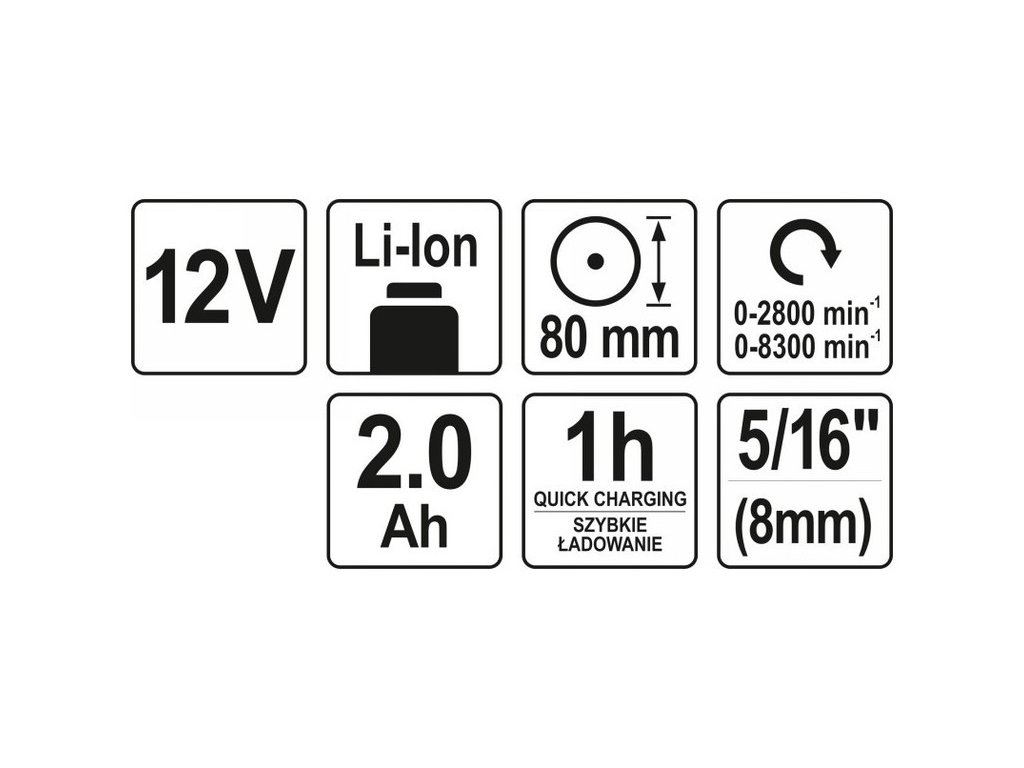 Akumulátorová leštička 80 mm 12 V Li-Ion (1 x 2,0 Ah akumulátor + nabíjačka) YATO