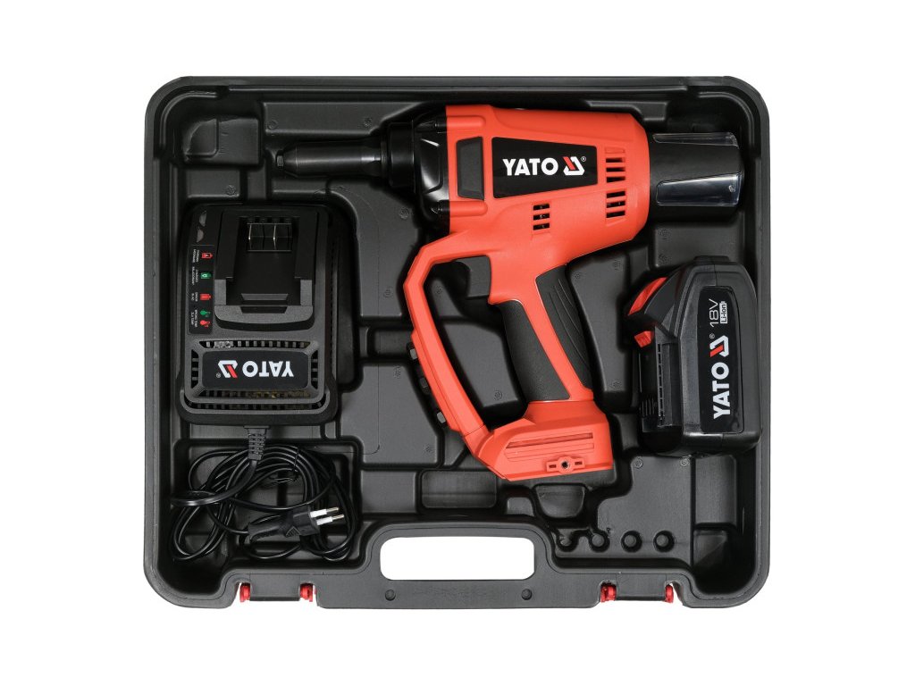 A szegecselőgép Yato 18V rendszer akkumulátorokkal működik (külön eladva), amelyek közös platformot biztosítanak széles körű berendezésekhez, mint például ütvecsavarozók, sds+ kalapácsfúrók, sarokcsiszolók, stb.