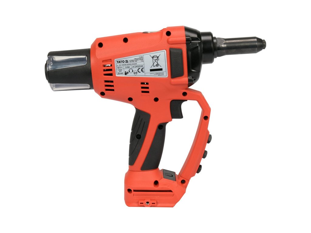 A szegecselő gépet a Yato 18V rendszerű akkumulátorok hajtják (külön eladó), amelyek közös platformot biztosítanak számos eszköz számára, mint például az ütvecsavarozók, SDS+ kalapácsfúrók, sarokcsiszolók, stb.