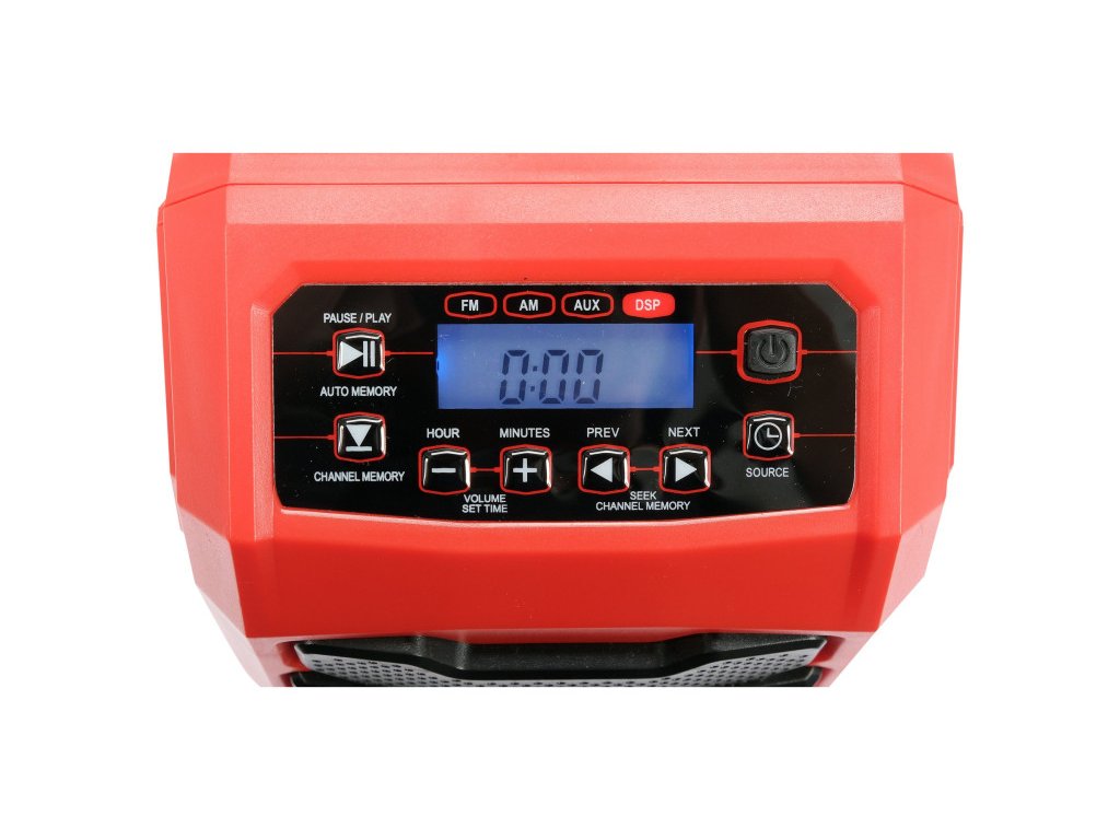 Hordozható rádió a műhelyben és az építkezésen. A készülék intuitív használatú és ellenálló a sérülésekkel szemben. Puha mechanikus gombok jól védnek a por bejutása ellen. Az LCD kijelző segítségével könnyen programozhatóak a rádióadók a memóriába.