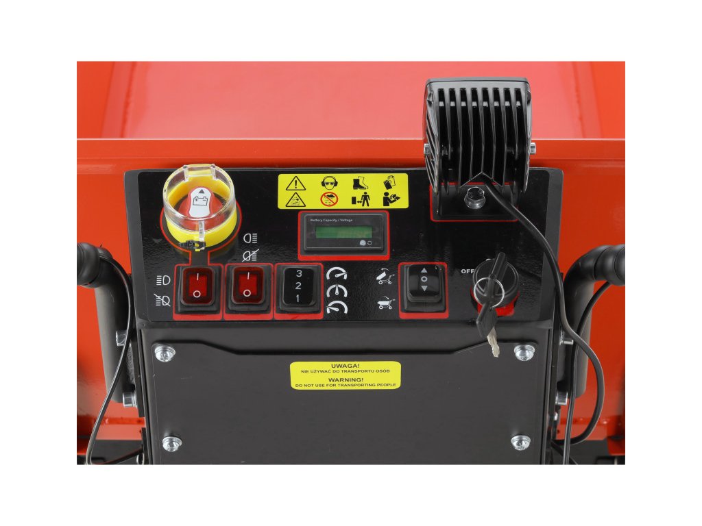 Az elektromos építőipari fuvarozó egy modern és környezetbarát eszköz, amelyet anyagok építőhelyeken, raktárakban és más helyeken történő szállításra terveztek, beleértve a szűk helyeken történő hatékony tehermozgatást is. A 1000 W-os kefementes DC motor használata magas hatékonyságot és megbízhatóságot biztosít. A hidraulikus rendszer gyors és hatékony billentést tesz lehetővé.