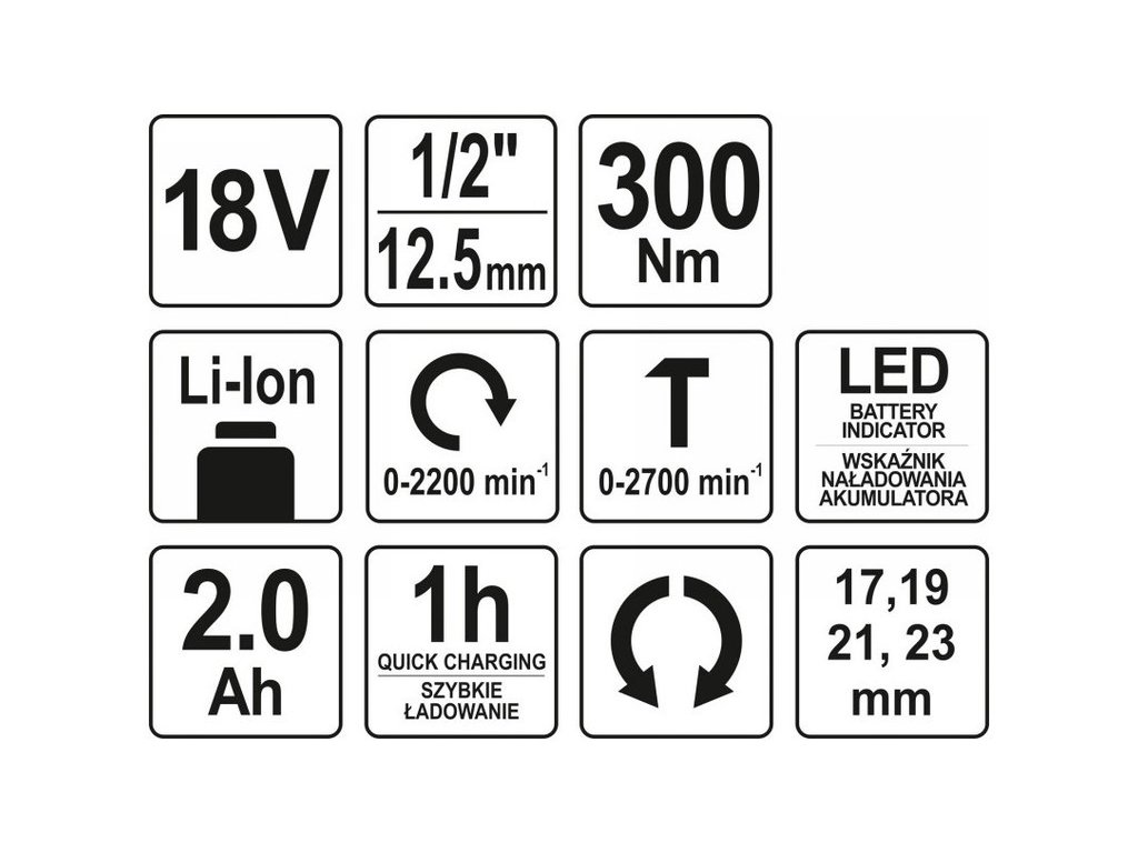 Ampact csavarhúzó 18v 1/2" 300nm akkumulátor szett 2.0ah töltő 60min