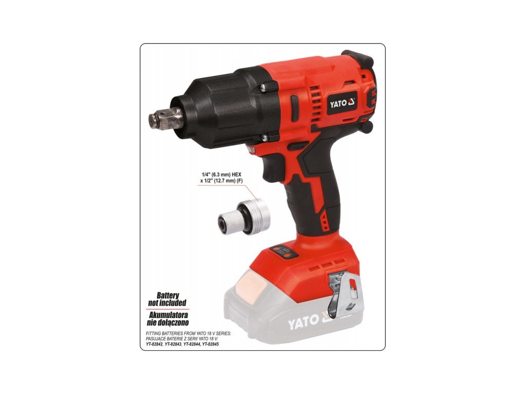 - az csavarhúzónak retrofittal kell ellátni egy akkumulátort a Yato platformjáról: választható: 2Ah (YT-82842), 3Ah (YT-82843), 4Ah (YT-82844) and 6Ah (YT-82845)