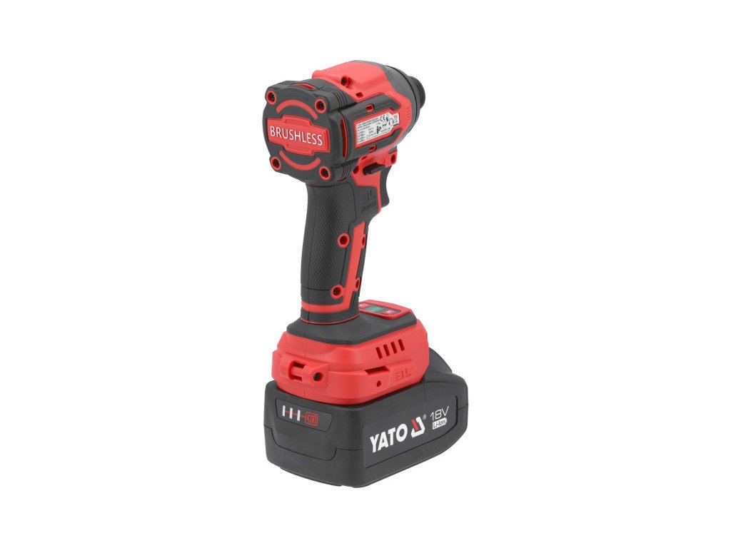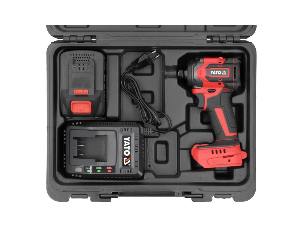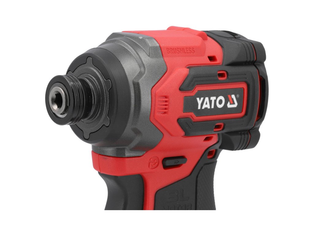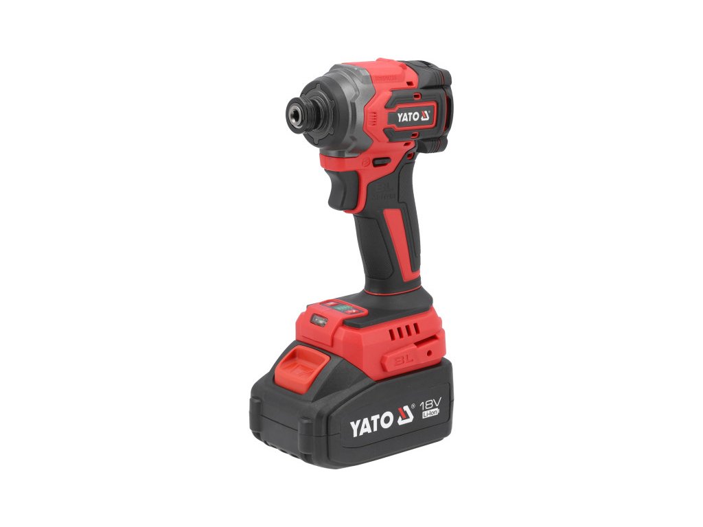 YATO 18V platform akkumulátorral működő, szénkefe nélküli ütvecsavarozó. Fő előnye a nagyon rövid, mindössze 90 mm-es testhossza. Ez lehetővé teszi a nehezen hozzáférhető helyeken történő munkavégzést és a csavar anyaghoz való merőleges nyomását. A csavarbehajtás és -kioldási nyomaték 4 pozíciós beállítása megvédi a felhasználót a csavar törésétől és a túlhúzástól. A tangenciális ütőmű a csavarbehajtás közben megakadályozza a bit csúszását. A csavarhúzó tartós hexa szerszámtartóval rendelkezik. A csavarhúzó hőterhelés elleni védelemmel van ellátva.