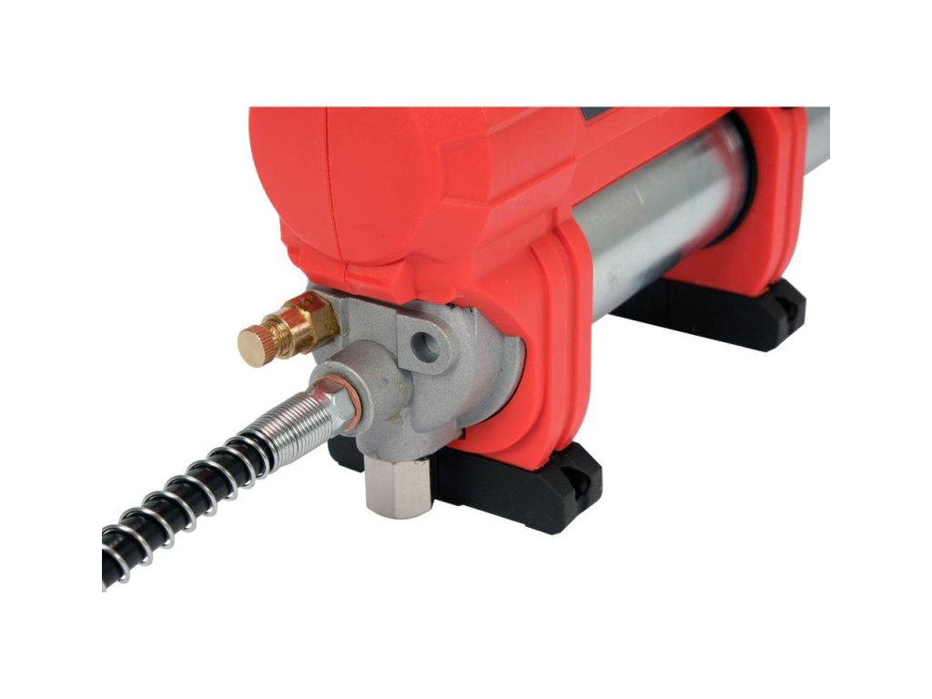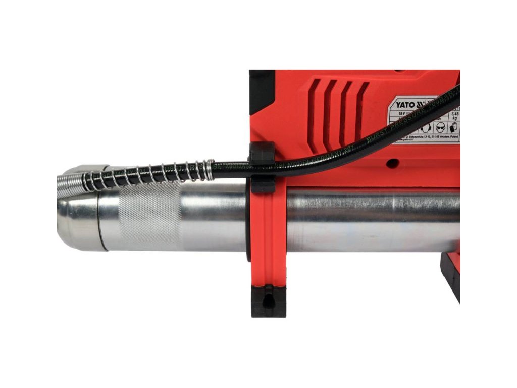 Mazací lis na batérie bol vyvinutý na nanášanie tuhého maziva na stavebné, poľnohospodárske a priemyselné stroje a zariadenia, ako aj osobné a nákladné autá Mazací lis má vlastnú nádrž na mazanie a flexibilnú hadicu, ktorá je prispôsobená štandardným mazacím lisom Vďaka batérii je možné mazivo nanášať jednoducho, rýchlo a efektívne aj na miestach bez elektriny vysoký výkon a účinnosť 284 g/min presné dávkovanie hmoty s prednastavením integrované LED pracovné svetlo dlhá spojovacia hadica 76 cm objem nádrže: 600 g tlak: 620 bar dlhý čas prevádzky na 1 nabitie 3 Ah batéria a nabíjačka Technické údaje Napätie (V) 18 Typ batérie Li-Ion Kapacita batérie (Ah) 3,0 Vrátane batérie 1 Kapacita maziva (g/min) 284 Tlak (bar) 620 Dĺžka hadice (m) 0,76 Stupeň ochrany IPX0 Trieda ochrany proti dotyku III Hmotnosť s batériou (kg) 3,45 Kapacita nádrže ( g) 600 Obsah súpravy: mazací lis, flexibilná hadica + 1 x 3,0 Ah batéria + nabíjačka na 90 minút