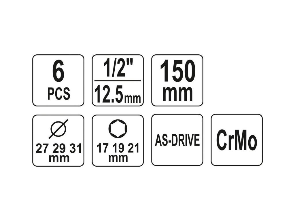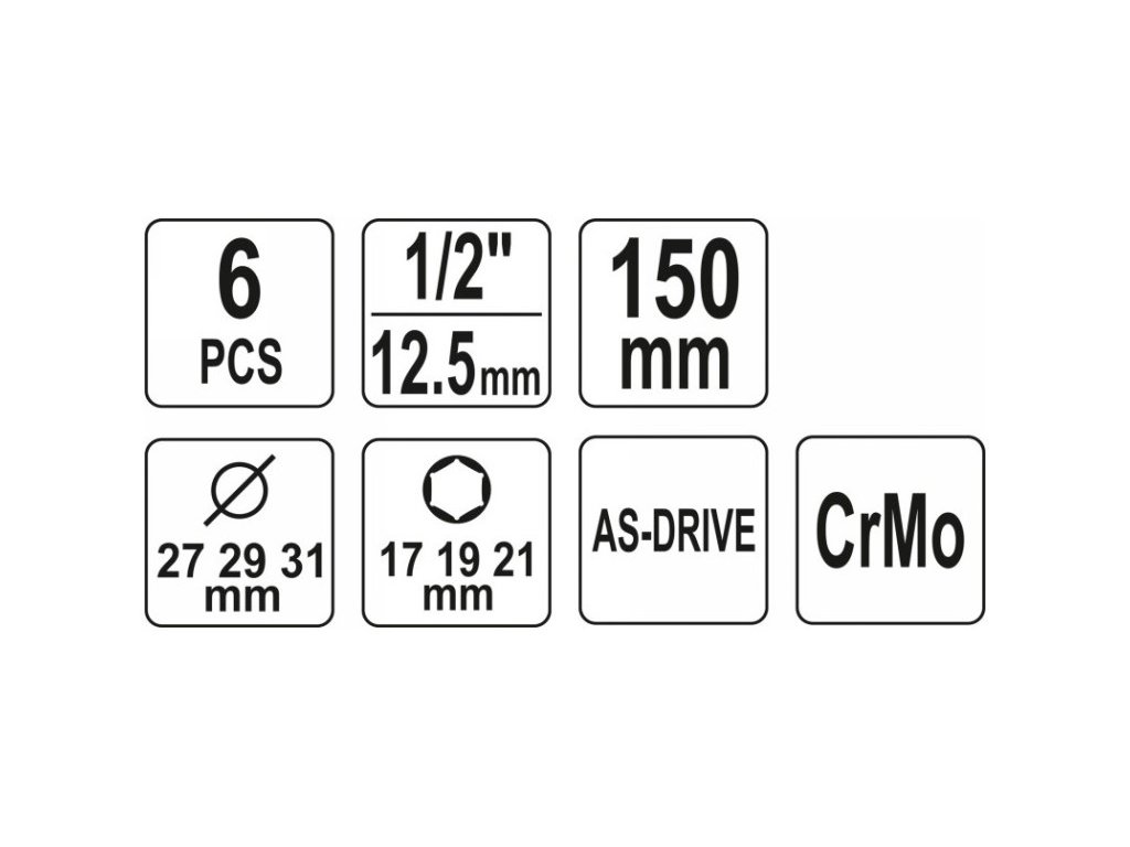 YATO Alloy sada ráfikov sada 6 kusov 1/2 17/19/21 mm CrMo