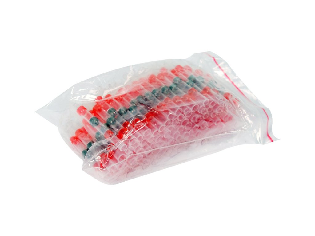 Átlátszó hőre zsugorodó cső YT-81452 középen egy ónnal borított gyűrűvel és a szélein két hőre olvadó ragasztógyűrűvel, ami tovább erősíti a csatlakozást.