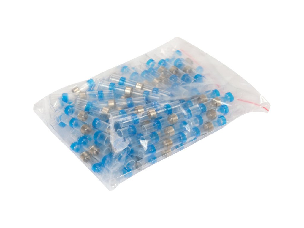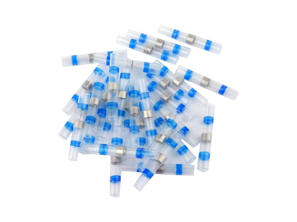 Átlátszó hőre zsugorodó cső YT-81453 középen egy ónnal, a két oldalán pedig hőre olvadó ragasztó gyűrűkkel, amelyek tovább tömítik a kapcsolatot.