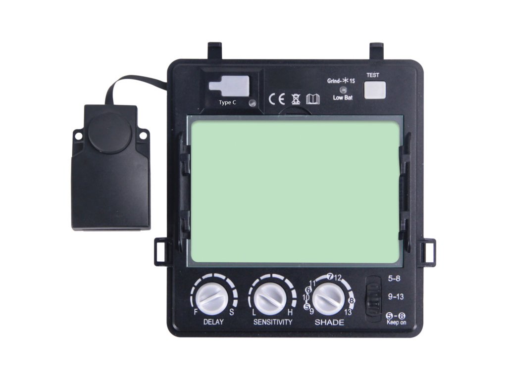 A szűrőkön van egy TESZT gomb az automatikus sötétedés működésének ellenőrzésére. A szűrő minden alkalommal történő ellenőrzésének rutinja segít megvédeni a munkavállaló szemét és egészségét.