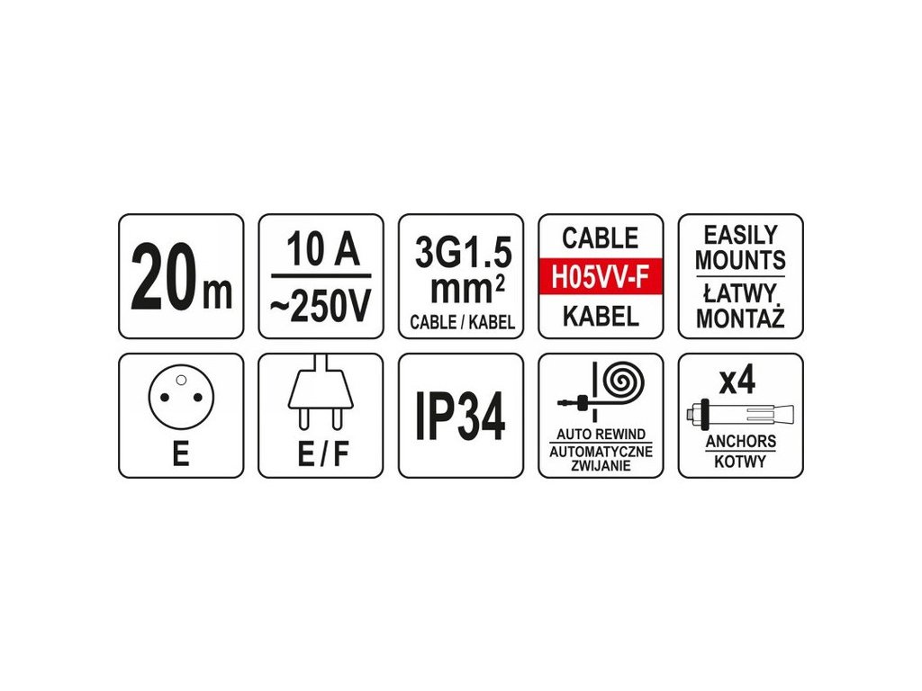 Elektrický káblový bubon automatický nástenný 3 x 1,5 mm2 20 m YATO
