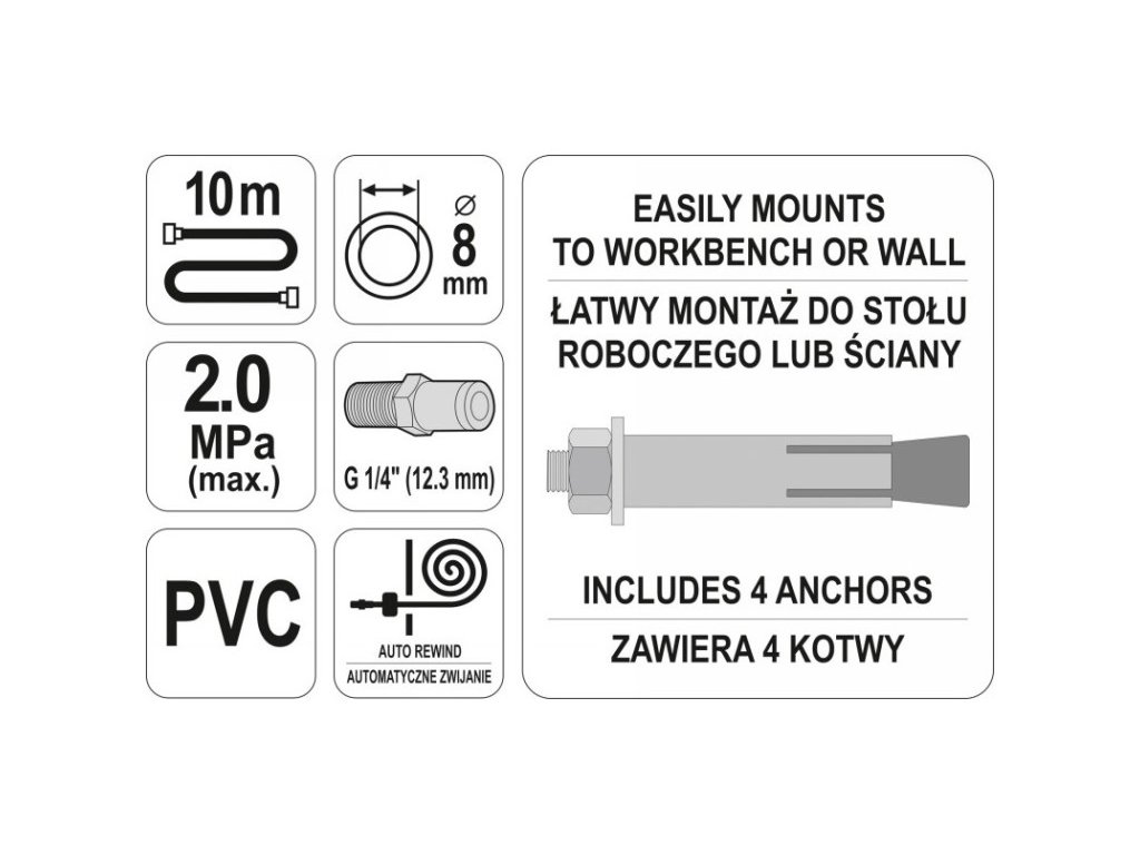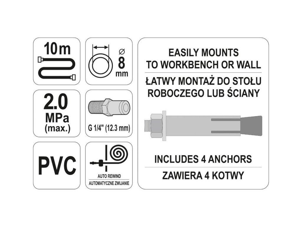 YATO Automatický navijak pneumatických hadíc 8 mm x 10 m
