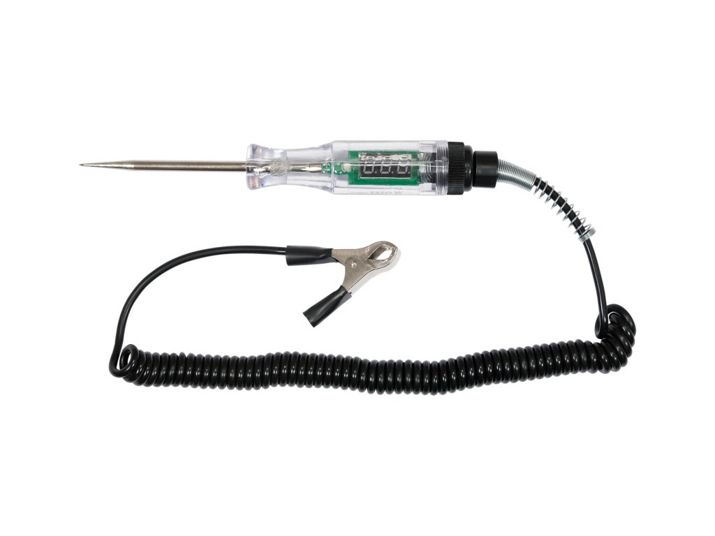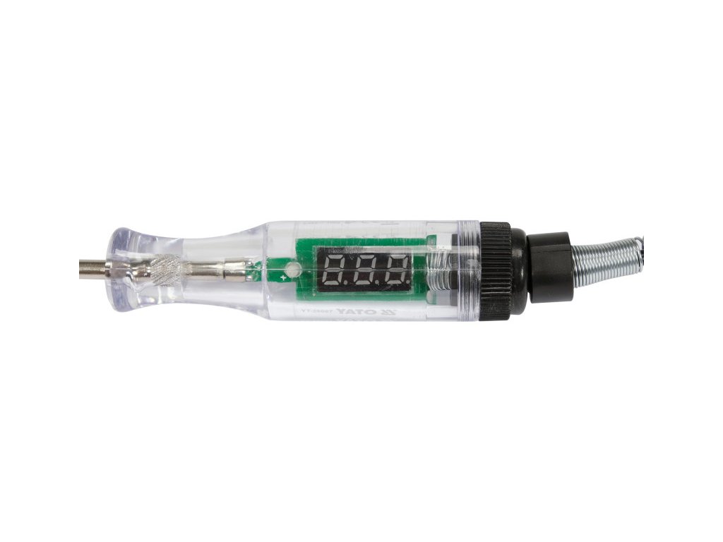 Automobilová skúšačka napätia na kontrolu účinnosti elektrických zariadení Je vybavený LED diódou a displejom zobrazujúcim namerané napätie.