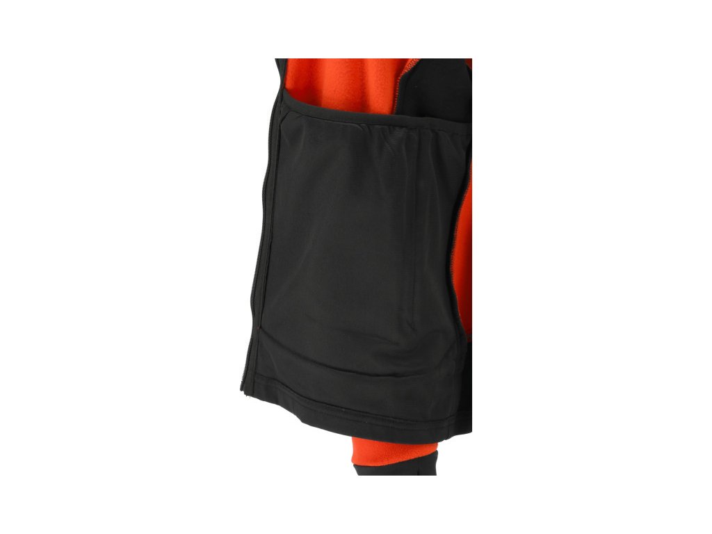 - A 2-irányú stretch anyag a oldalán, a karok alatt és részben a ujjak alatt szinte nullára csökkenti a hagyományos polar anyagoktól ismert kellemetlenségeket, pl. törzsfordulatok végzésekor vagy ha a karok a fej fölött dolgoznak. Jobb légáramlást biztosít, így kevesebbet izzadsz, különösen a hónaljban.