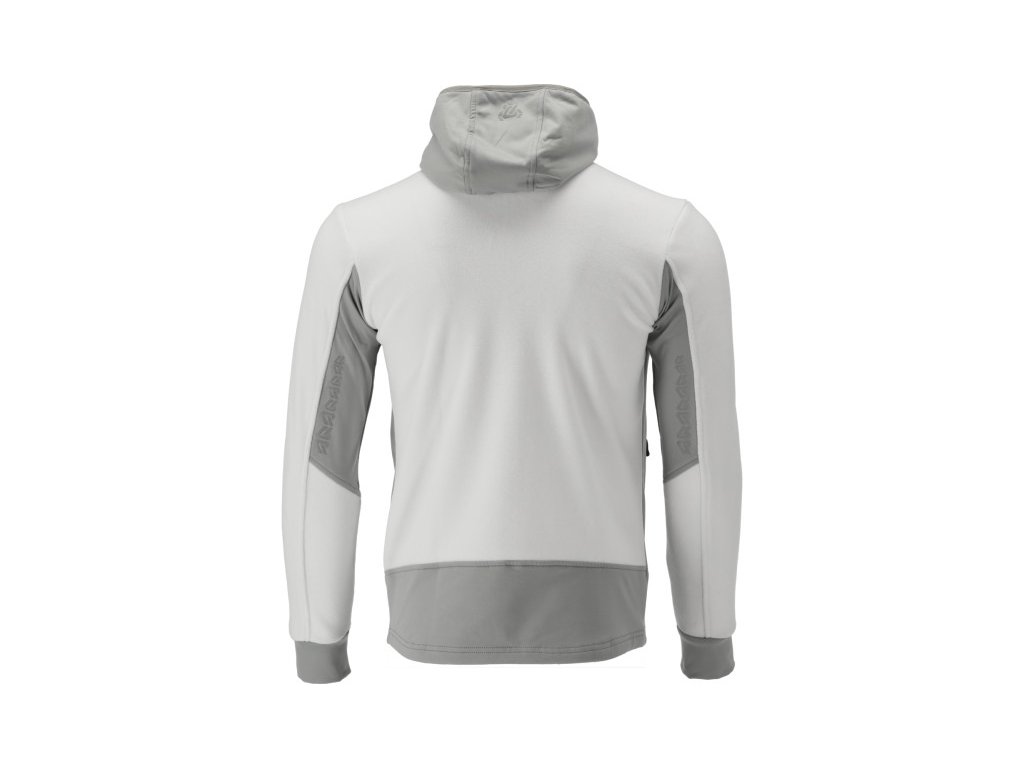 - A 2-irányú stretch anyag az oldalakon, a karok alatt és részben a ujjak alatt csökkenti a hagyományos polarból ismert kellemetlenségeket, pl. a törzscsavarásoknál vagy a fej felett végzett munkánál. Jobb légkeringést biztosít, így kevesebbet izzad, különösen a hónaljban.