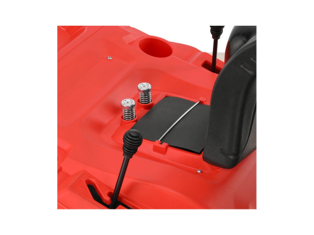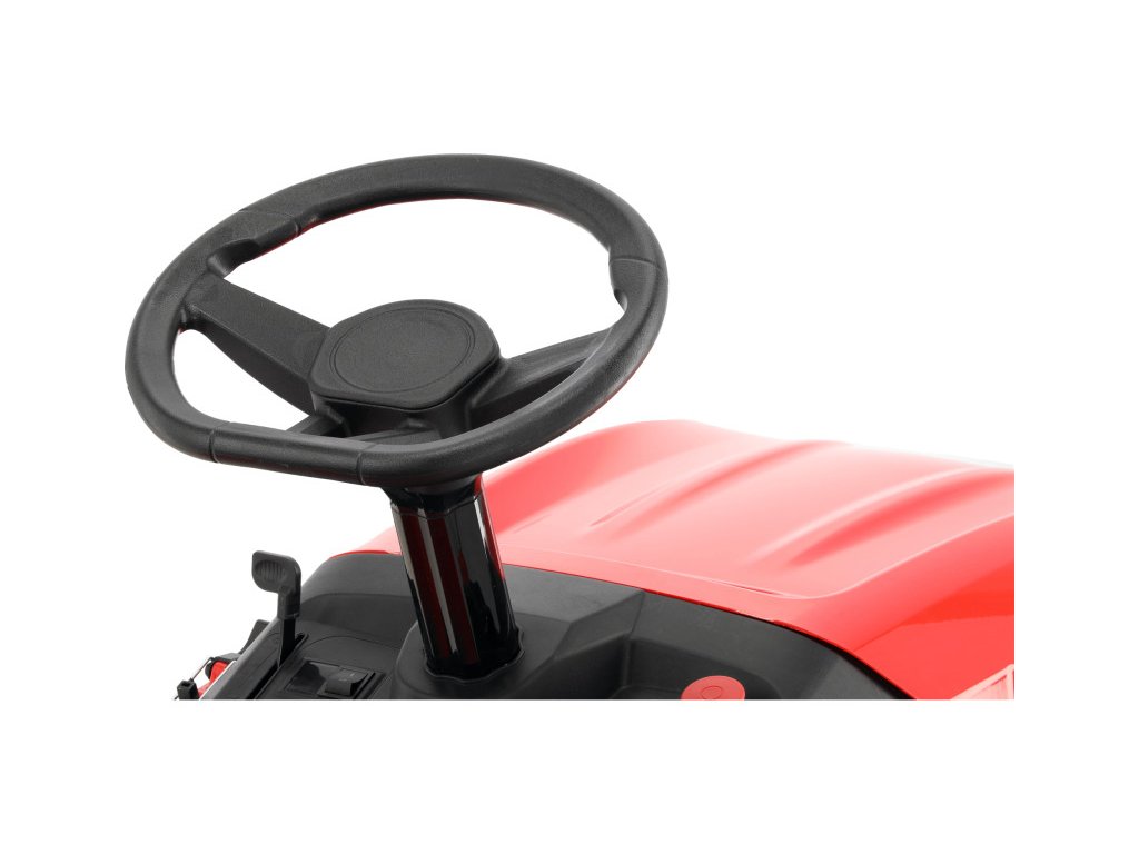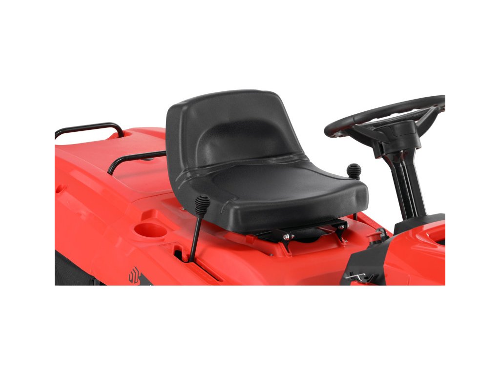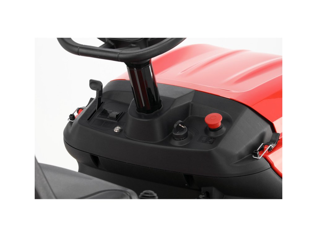 A traktor 5 sebességes kézi váltóval rendelkezik. Elektromos indítóval és 220 literes kosárral felszerelve, ami nagyban megkönnyíti a nagyobb területekről származó fű begyűjtését. A vágóegység indítása és leállítása a kormánykerék alatt található kapcsoló megnyomásával történik.