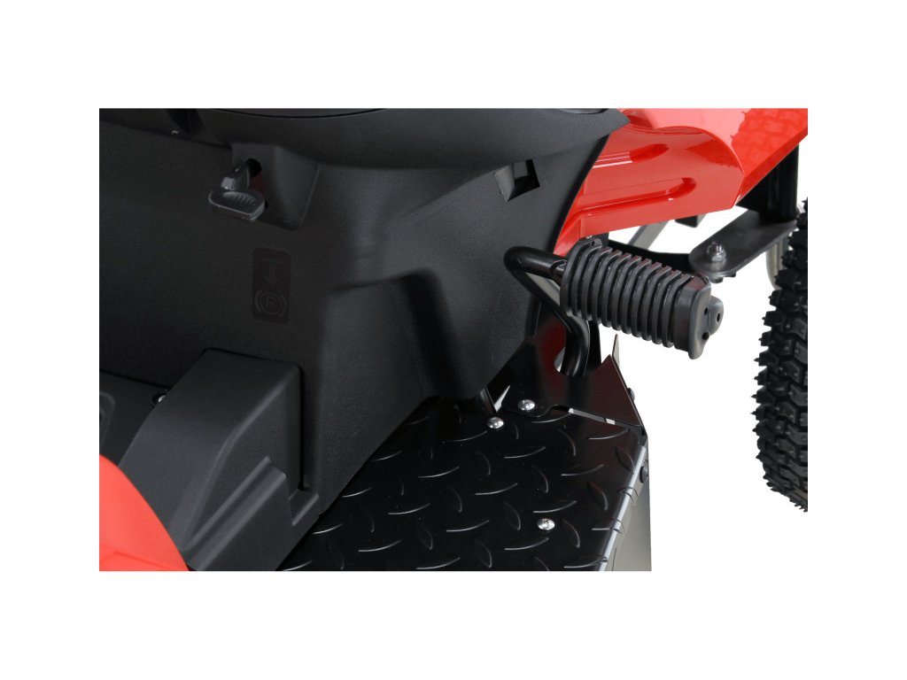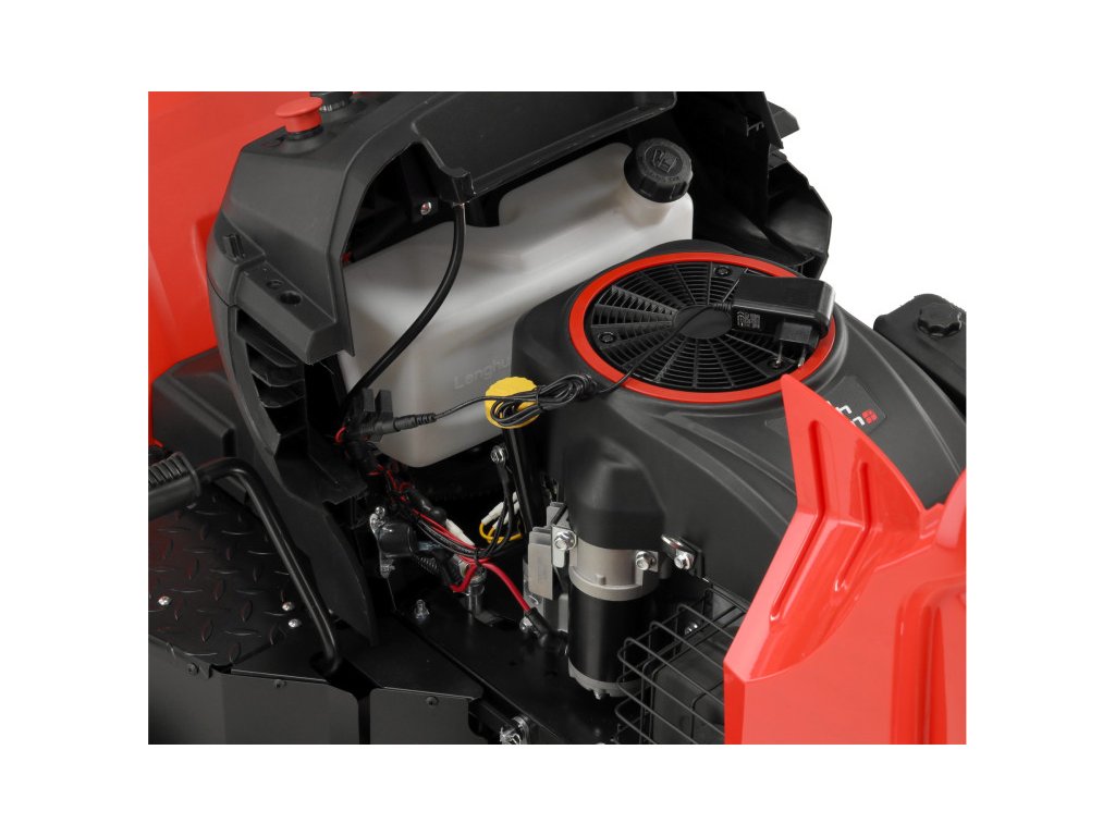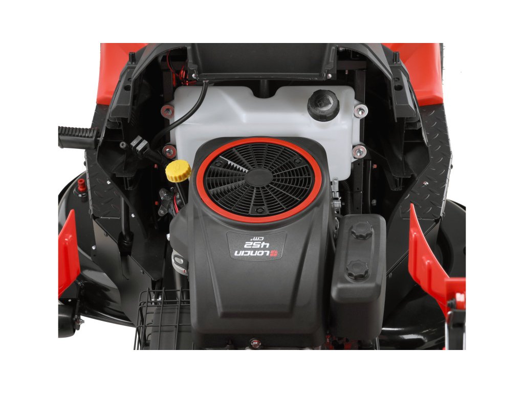 Önjáró robbanómotoros fűnyíró, 452 cm3 LONCIN motorral szerelve, amely rendkívül magas, 8.2 kW teljesítményt és hatékony működést biztosít. A 96 cm-es munkaszélesség nagyon gyors nyírást tesz lehetővé, az 5 fokozatú központi nyírásmagasság állítás pedig lehetővé teszi a kések szintjének beállítását a gyep állapotához és a terepviszonyokhoz.