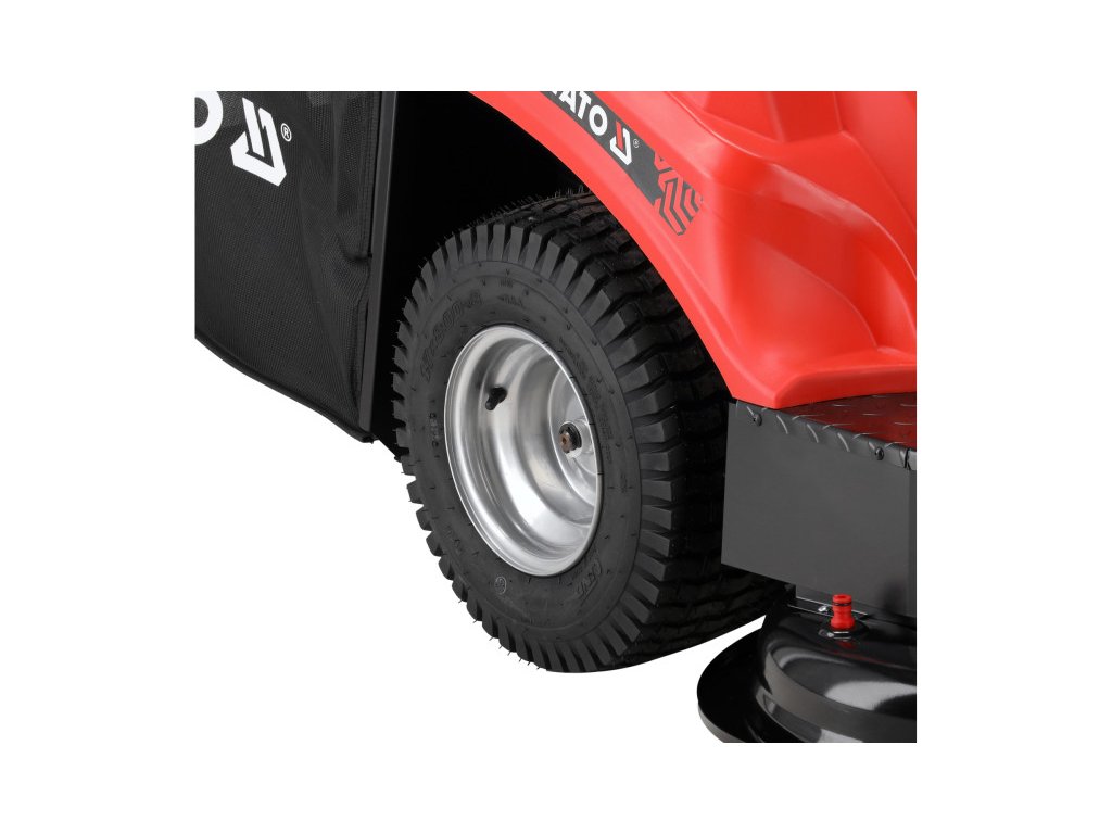 A pneumatikus kerekek támogatják a traktor manőverezését még a nehezen megközelíthető és igényes területeken is, például lejtőn vagy egyenetlen talajon. A fényszórók jó láthatóságot biztosítanak a gépnek sötétben, a beépített vontatóhorog, amihez pótkocsit lehet csatolni, megkönnyíti a kerti terhek szállítását.