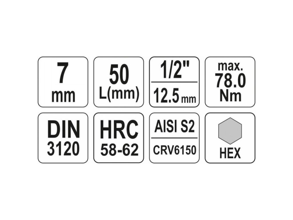 Bitový kľúč imbusový 1/2" 7 mm CrV YATO