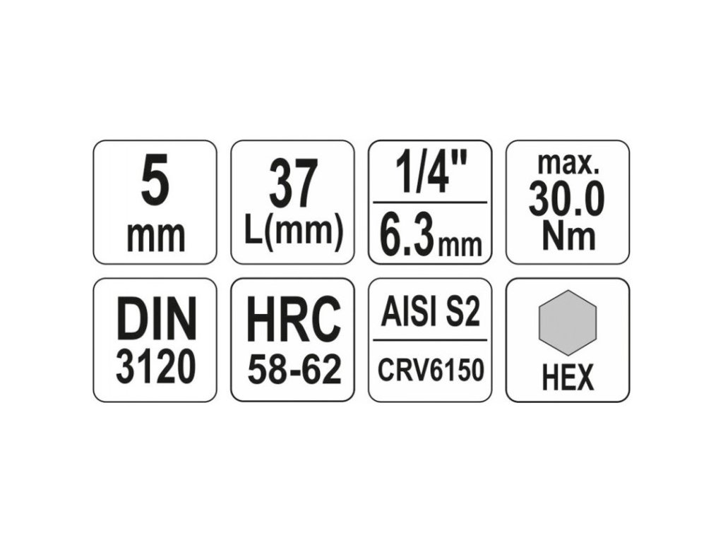Zásuvka na bity Imbus 1/4" 5 mm CrV YATO