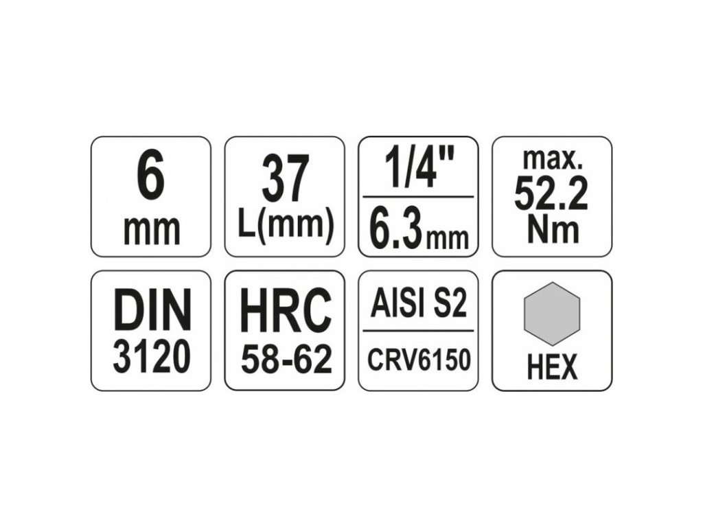 YATO nástrčný kľúč na bity Allen 1/4 6 mm CrV