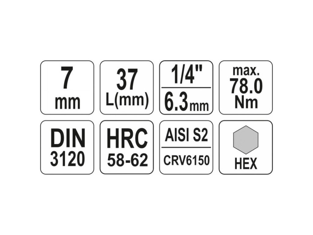 YATO nástrčný kľúč na bity Allen 1/4 7 mm CrV