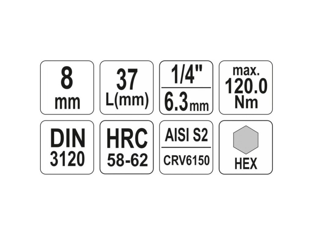 YATO nástrčný kľúč na bity Allen 1/4 8 mm CrV