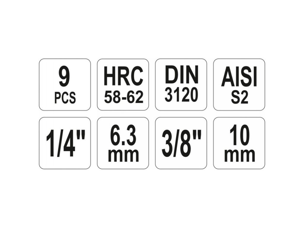 Sada nástrčných kľúčov YATO 9 kusov Allen 1/4, 3/8 CrV