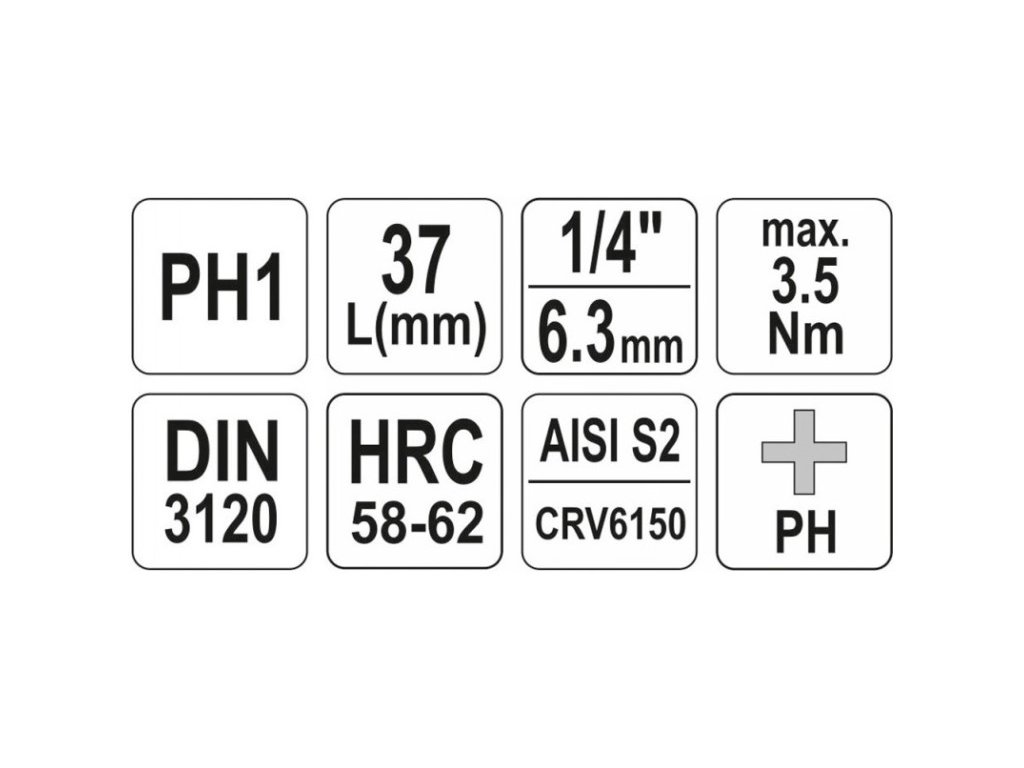 Čapový kľúč 1/4” – PH1 – L 37 mm – 3.5 Nm