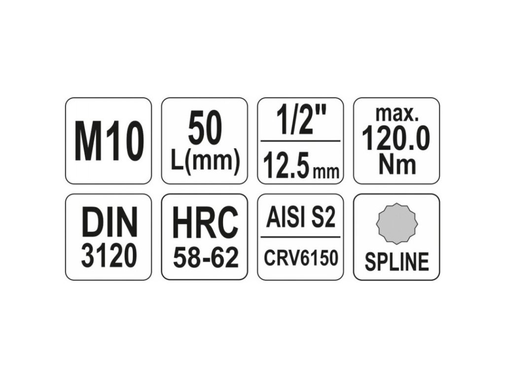 YATO Bit Nástrčkový kľúč Spline 1/2 M10 CrV