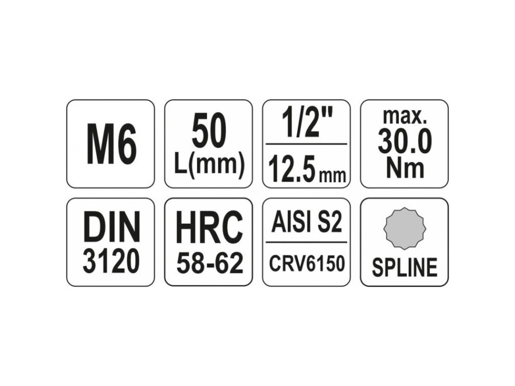 YATO nástrčný kľúč Spline 1/2 M6 CrV