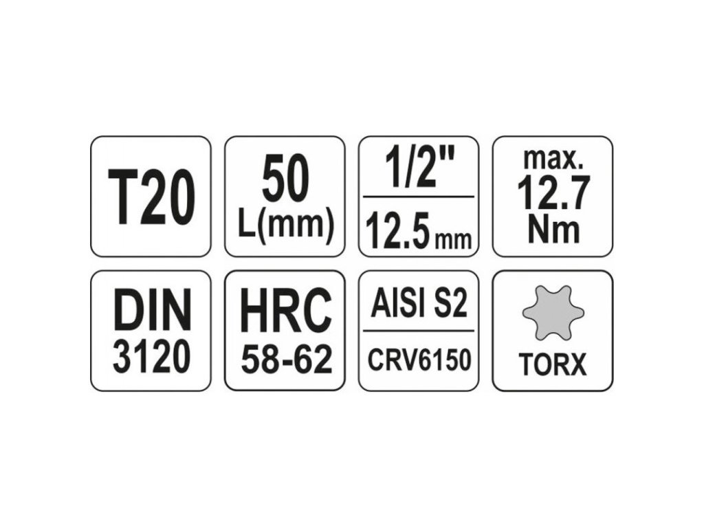 Nástrčný kľúč Torx 1/2" T20 CrV YATO