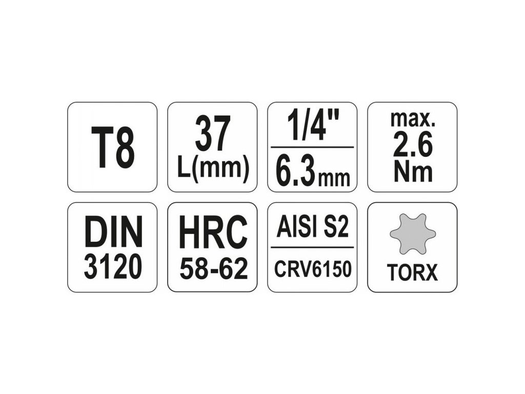YATO Torx 1/4 T8 CrV Dugout Bit