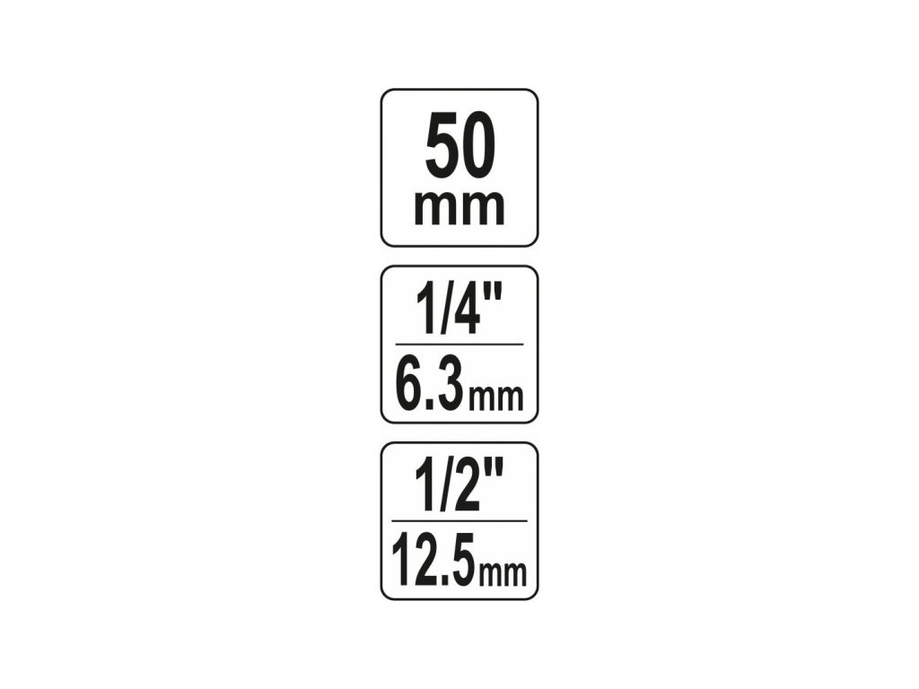 Adaptér hrotu bitu 1/2" štvorhran->1/4" šesťhran 50 mm (pre vysoký krútiaci moment) YATO