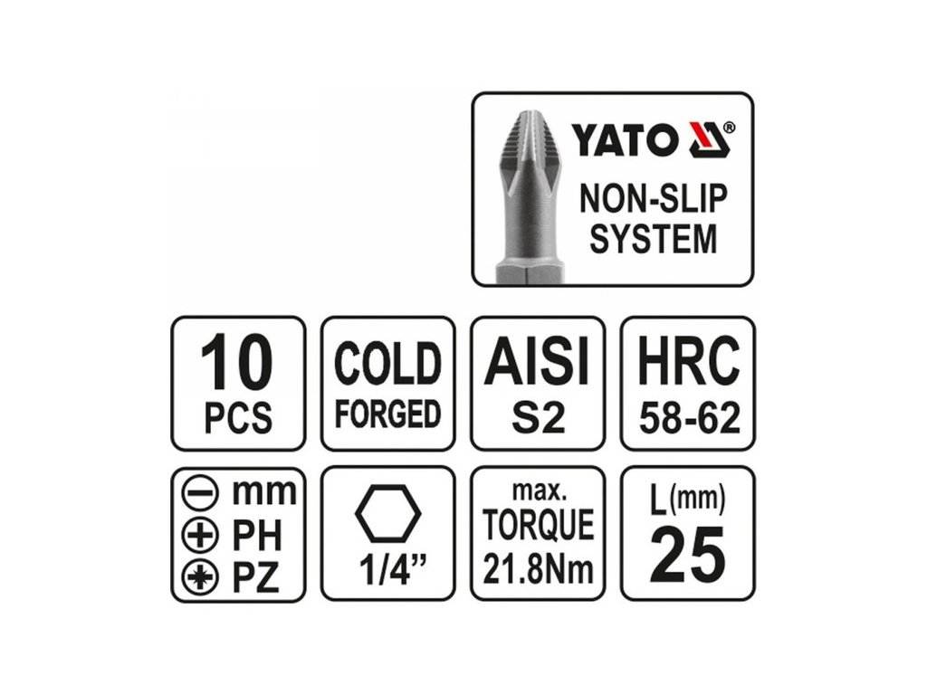 Sada hrotov YATO 10 kusov 25 mm