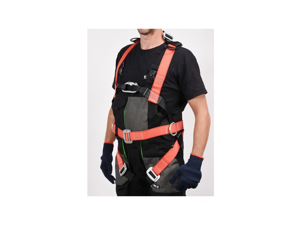 A YT-74220 biztonsági övvel ellátott testheveder egy olyan rendszer része, amely arra van kifejlesztve, hogy megvédje az embereket a magas helyről történő leeséstől. Helyesen viselve a hevedernek szorosan kell illeszkednie a törzs, a derék és a combok köré, hogy egy dedikált rögzítési ponttal együtt egyenletesen eloszthassa a testre ható erőket egy esés során.